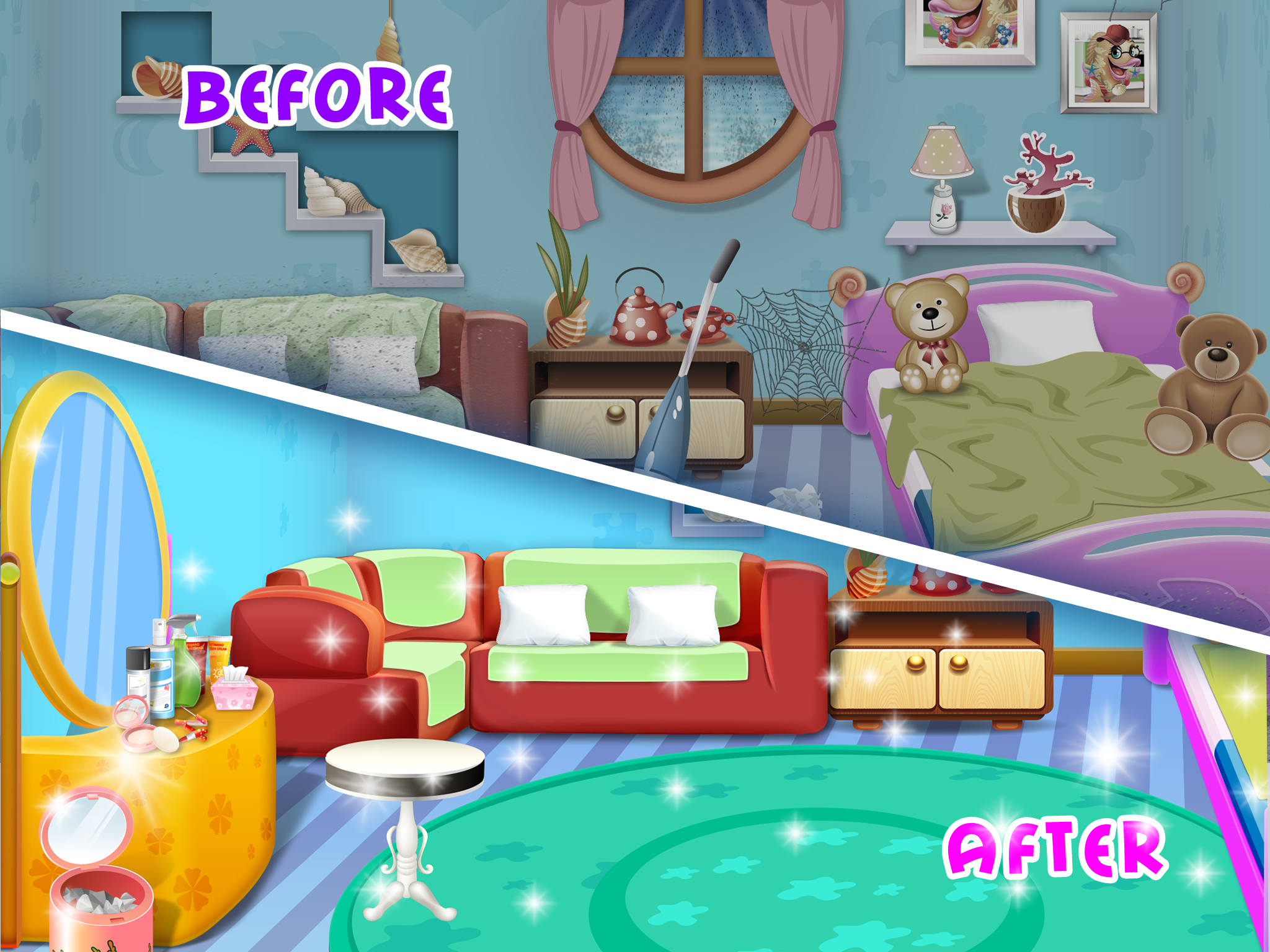 Meet your new best friend Cute Fish, help her clean up the house and play girls all time favorite games! Have fun in different rooms or play in the ocean. Enjoy your favorite activities: clean up the bedroom and playroom, do laundry, create your own toy room, play memory game, decorate the front yard or slice and eat yummy cake with Cute Fish friends!