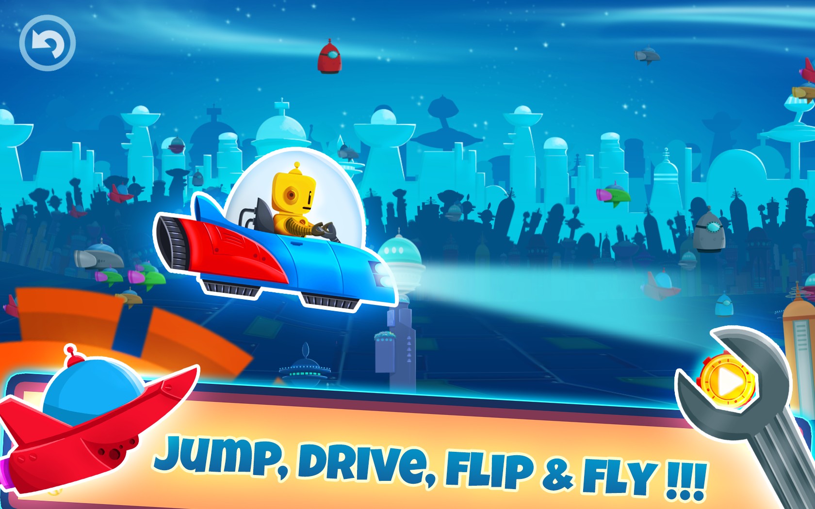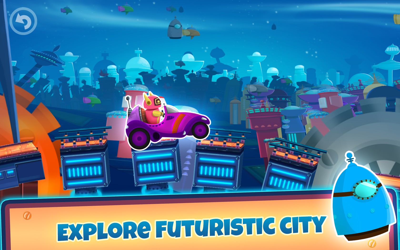 Visit little cute robots planet floating in a boundless galaxy and have some fun in their greatest racing event - Robot racing! Drive, fly, jump and flip in 2 racing worlds and complete 24 racing levels with four adorable robots and their spaceship cars: Pink Lightning, Clank, Rusty and Icy-Mint.
