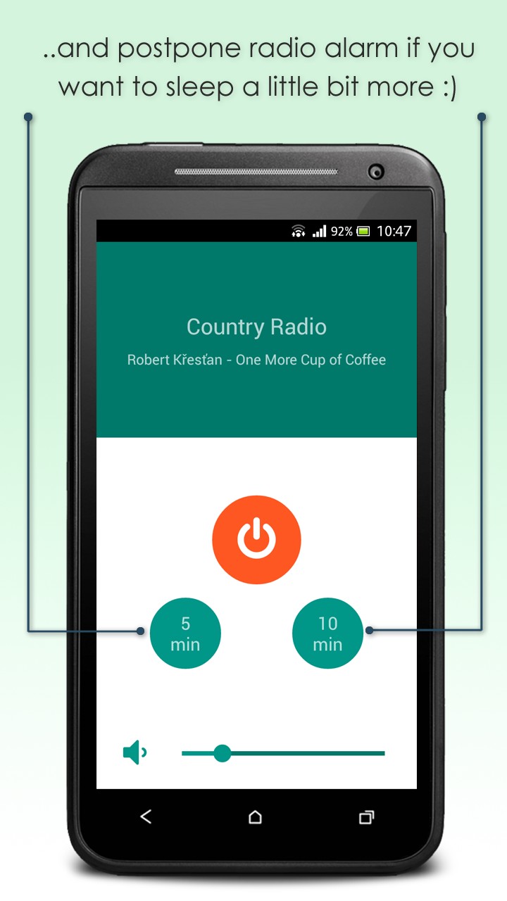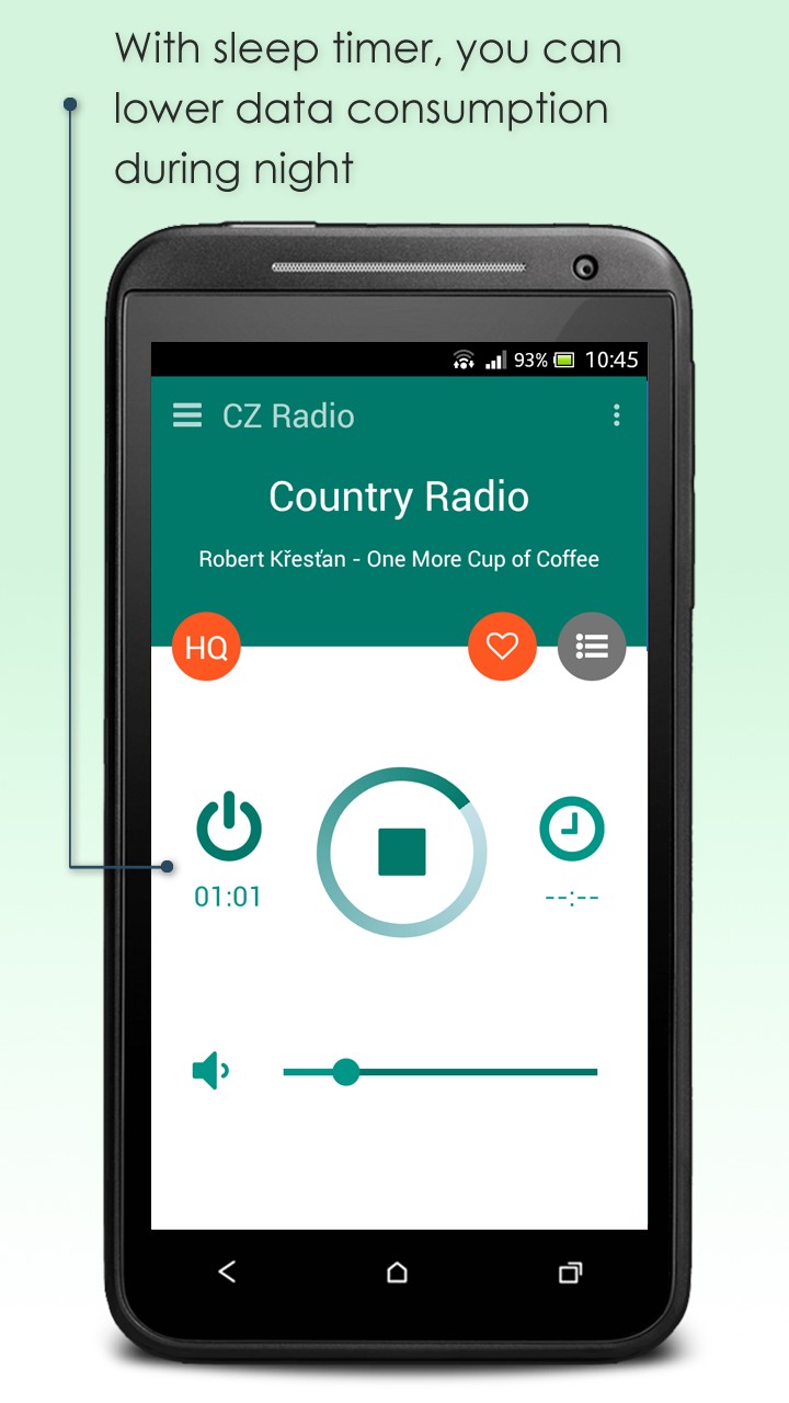 Have you already been tired of the same alarm sound, beeping every morning? You can use CZ Radio also this way! Just choose your favourite Czech radio station and time, when alarm should be triggered and wake up every sunrise to a different music. In case you loose access to the internet over night, don't worry, application will wake you up with the default tone of you smartphone. On the other hand, if you like to fall asleep while listening to some music, but you don't want to leave it playing whole night, you can easily set it to shut down automatically after the chosen time.