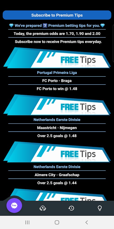 • 2 Different Sections - to provide the best betting tips -> Free Daily Betting Tips, Premium Daily Betting Tips.