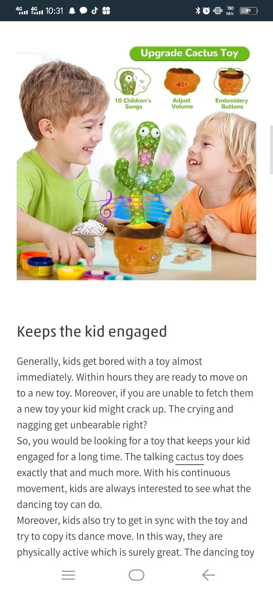 We believe that during a kid's learning and development phase, he should have exposure to such interactive toys.