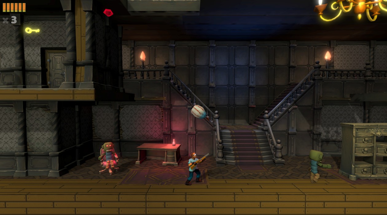 A guy in a cap, by the name of Drake, rides his car. Everything goes according to plan, it goes smoothly, no problems. It starts to rain, it gets dark. He was impatient to go to the toilet, but in the rain is not very convenient. Nearby he was see the mansion. While he was doing his dirty work under a canopy, someone stole his cap.. It seems that it was a zombie and he ran into the mansion. In vain he did it. Drake takes a shotgun and follows him.