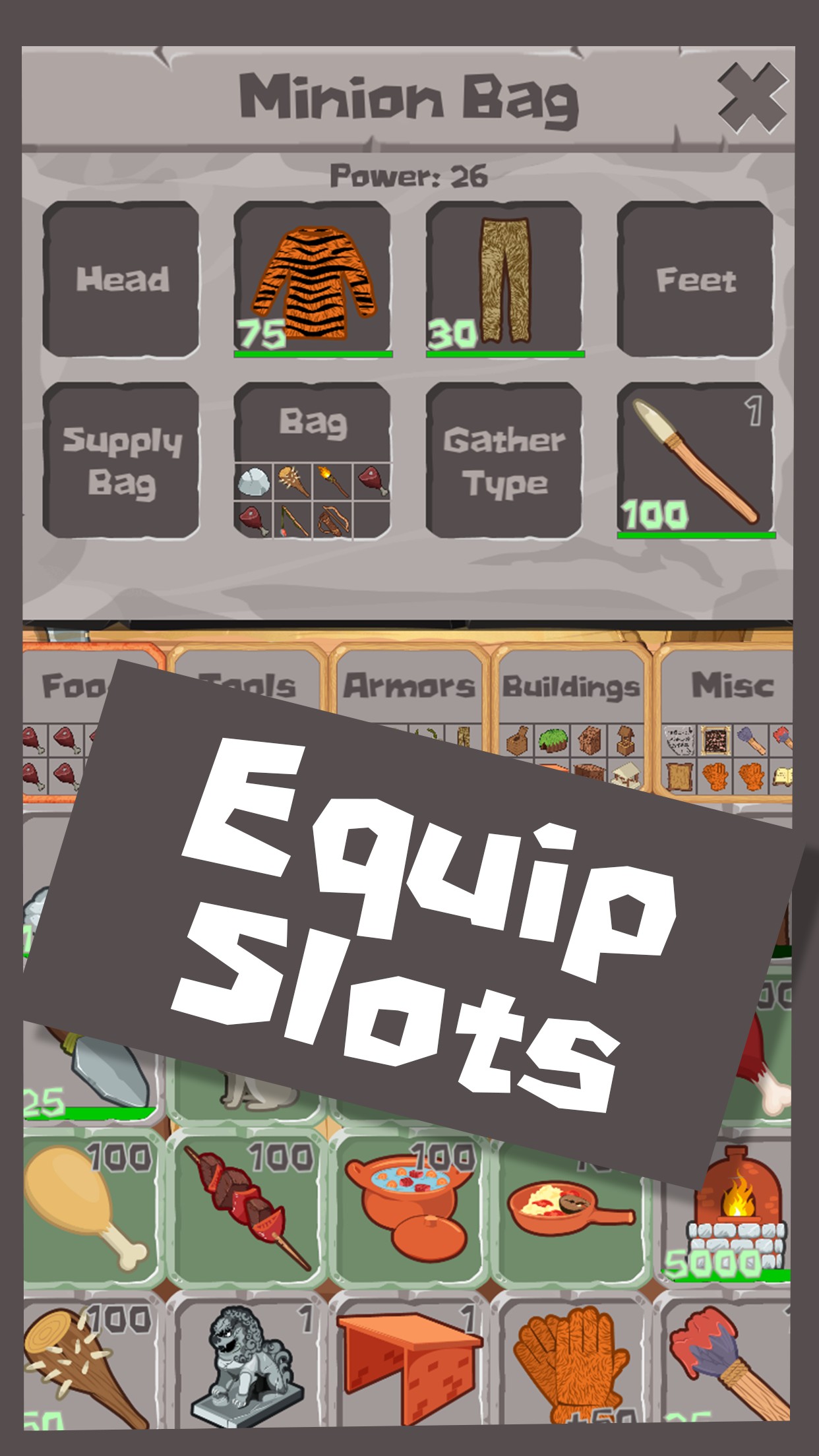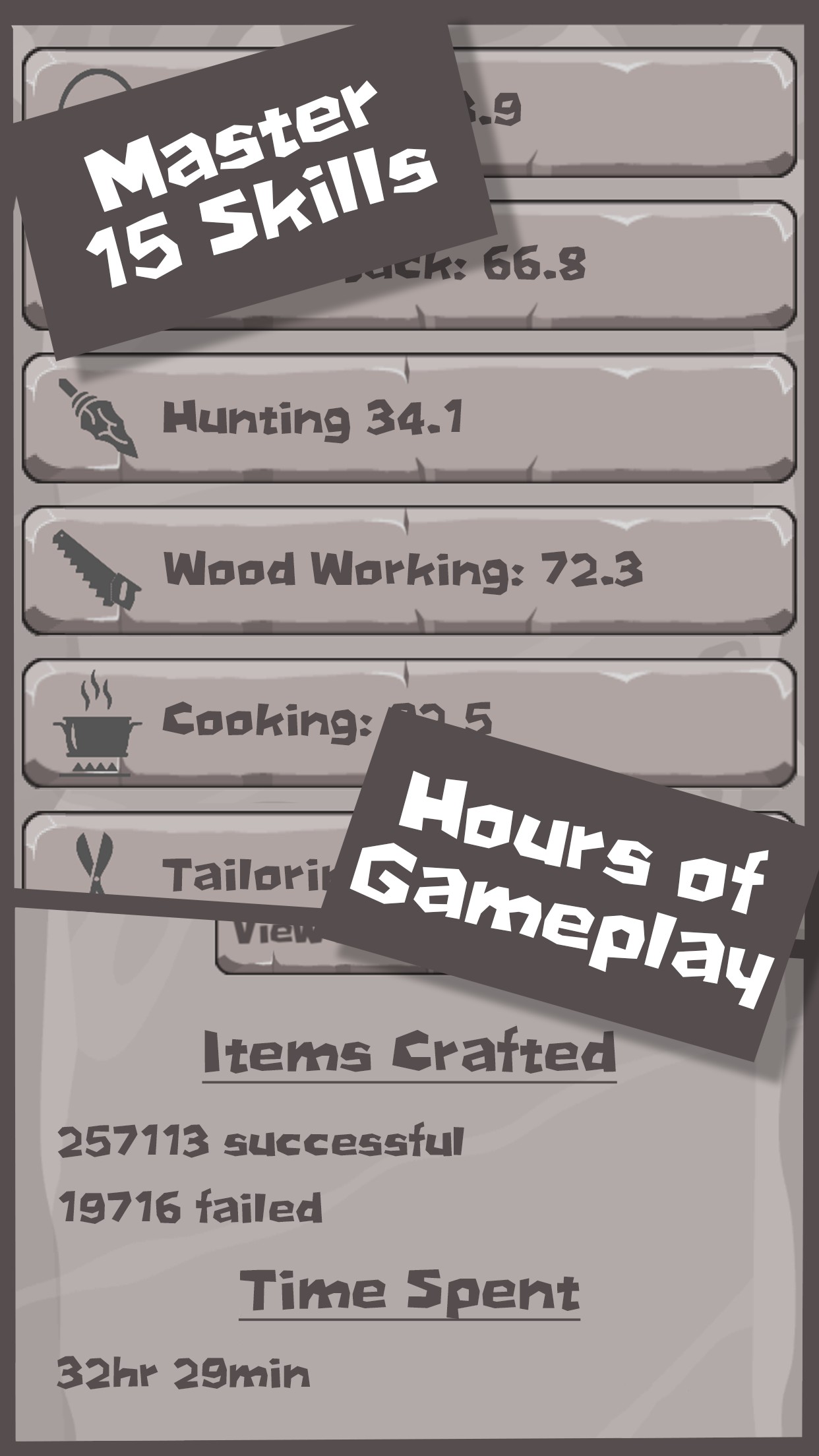 You are a lost young Homo Sapien whose village was destroyed by the Homo Erectus. Master Crafter Alf, takes you as his apprentice and teaches you the fine art of crafting. You learn everything you can, increase your skills, discover new recipes and craft a lot of items. You build a village one stick at a time and further progress humankind. But some forces will stand in the way of your progress...