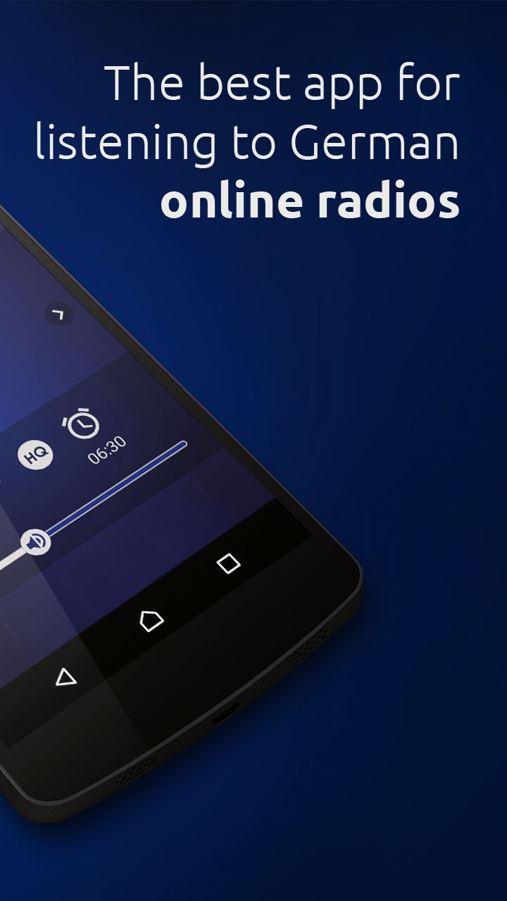 DE Radio is an easy and elegant internet streaming service for German radios. It provides many useful features - music information, sleep timer, radio alarm with chosen German radio station, and much more. Try DE Radio, maybe you've just finally found the most suitable streaming application for you!