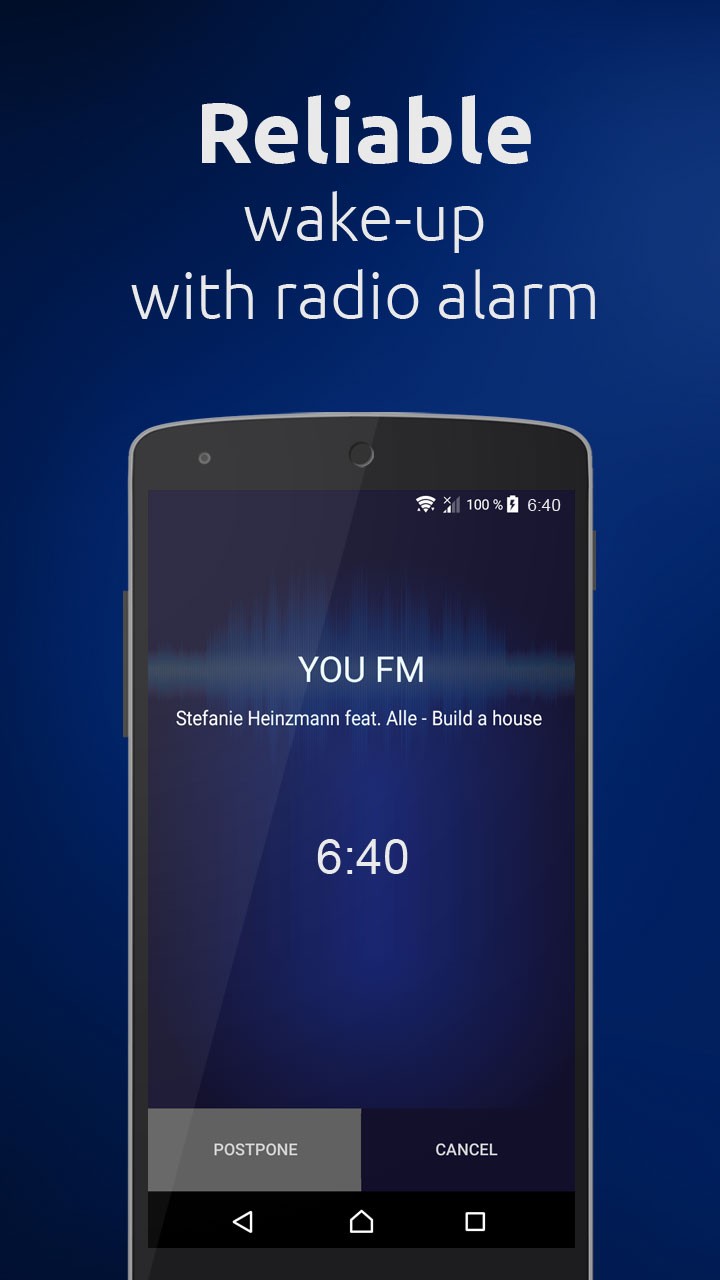 Have you already been tired of the same alarm sound, beeping every morning? You can use DE Radio also this way! Just choose your favorite German radio station and time, when alarm should be triggered and wake up every sunrise to a different music. In case you loose access to the internet over night, don't worry, application will wake you up with the default tone of you smartphone. On the other hand, if you like to fall asleep while listening to some music, but you don't want to leave it playing whole night, you can easily set it to shut down automatically after the chosen time.