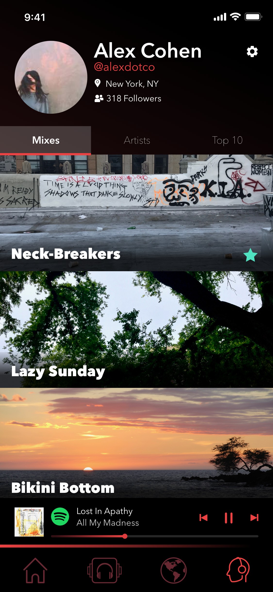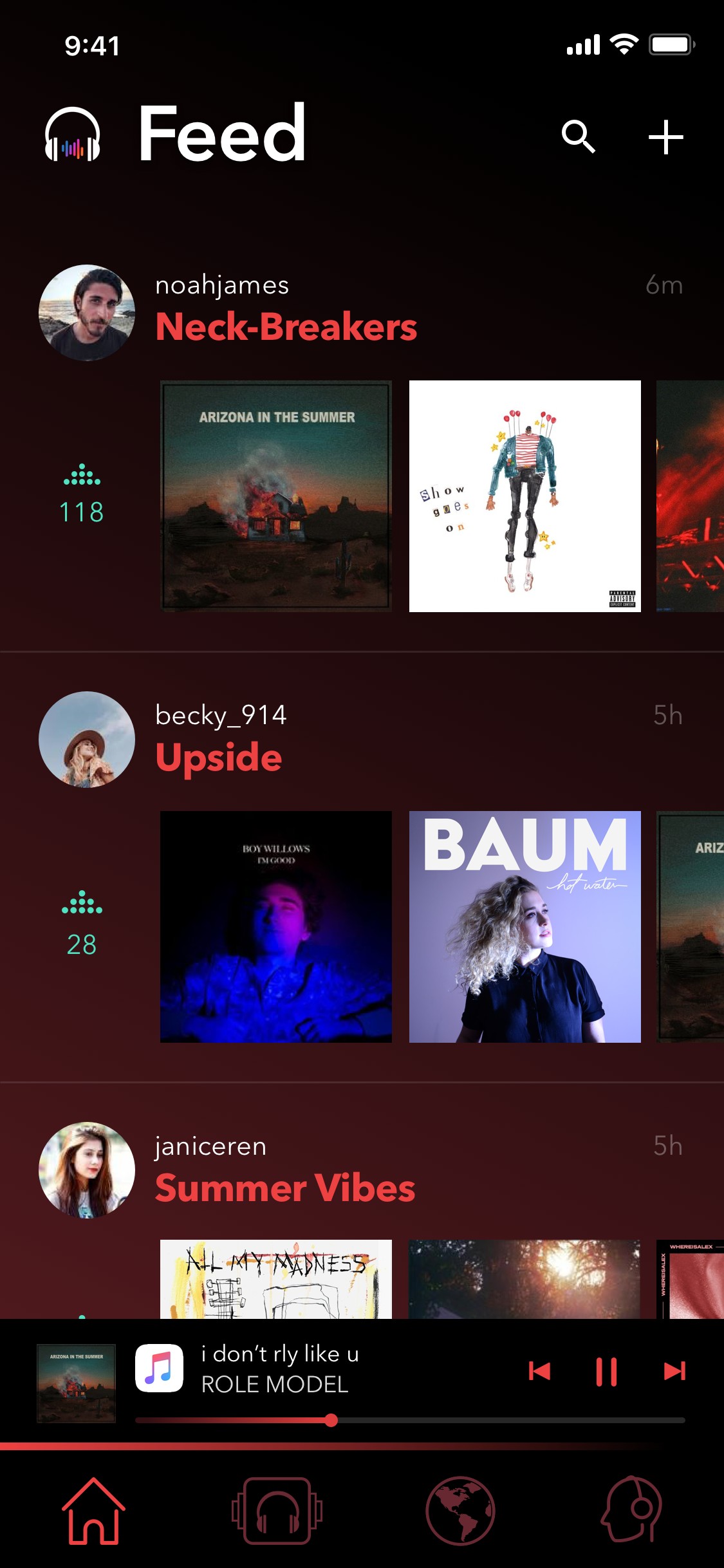 Show your friends the music you’ve been listening to lately by posting mixes, collections of 3-5 songs, on the Feed. Friends may upvote and comment on the mixes or favorite them, saving them to their own profiles for later listening.