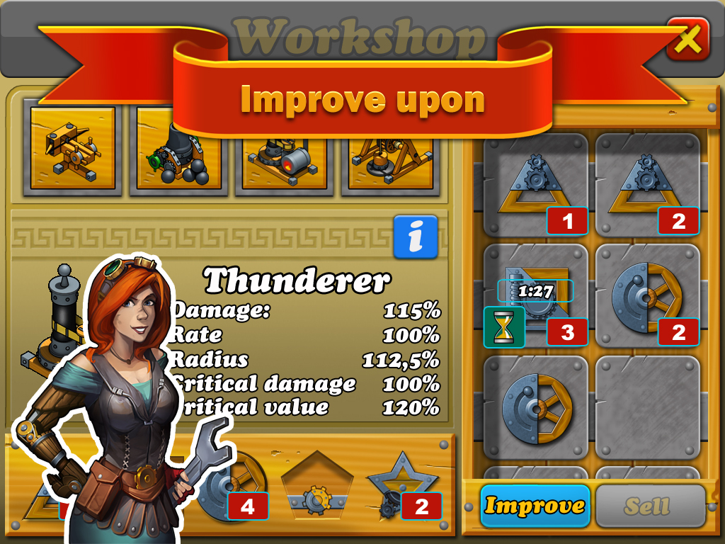- 5 types of mechanisms that will affect the performance of your combat towers and can be upgraded