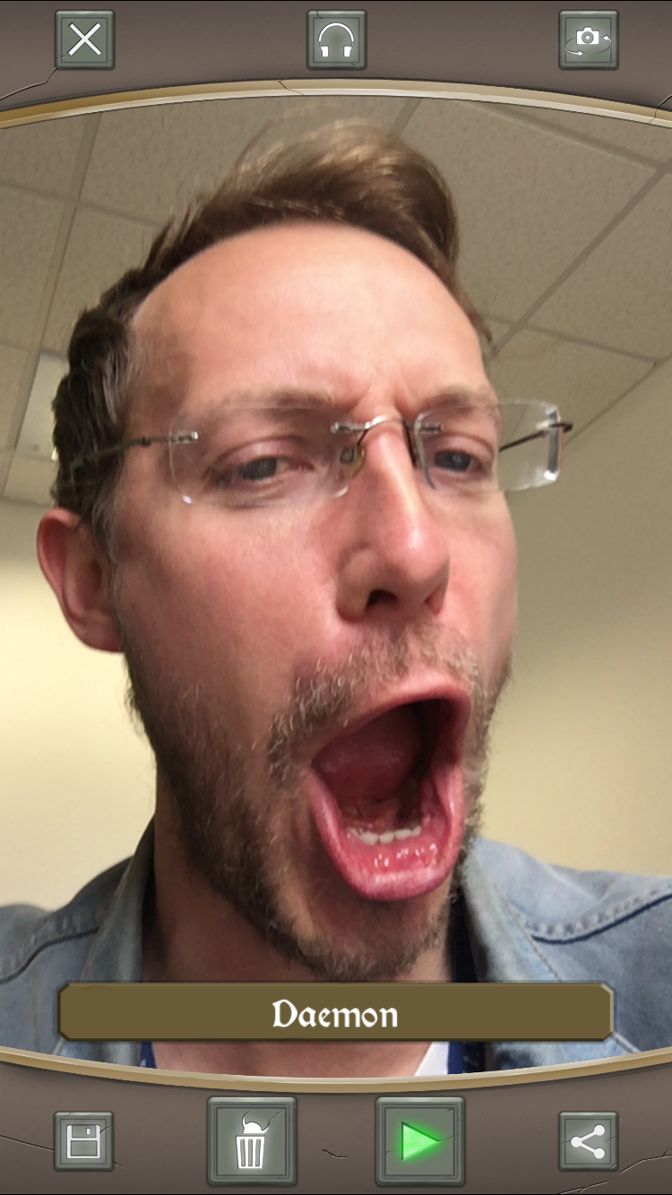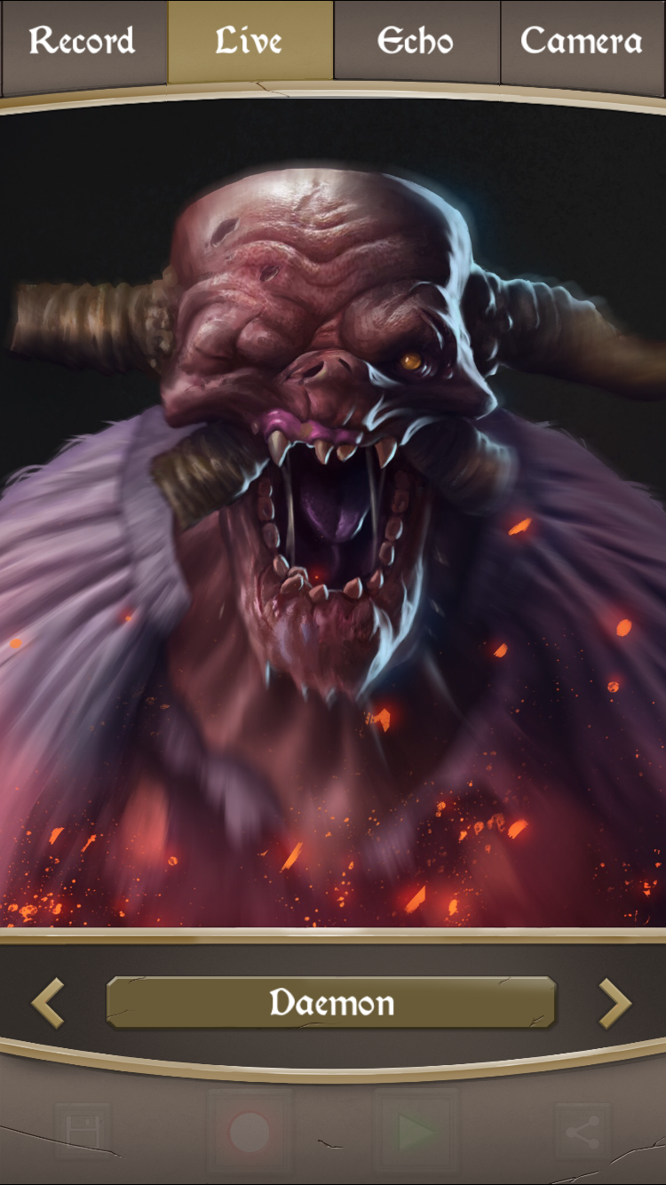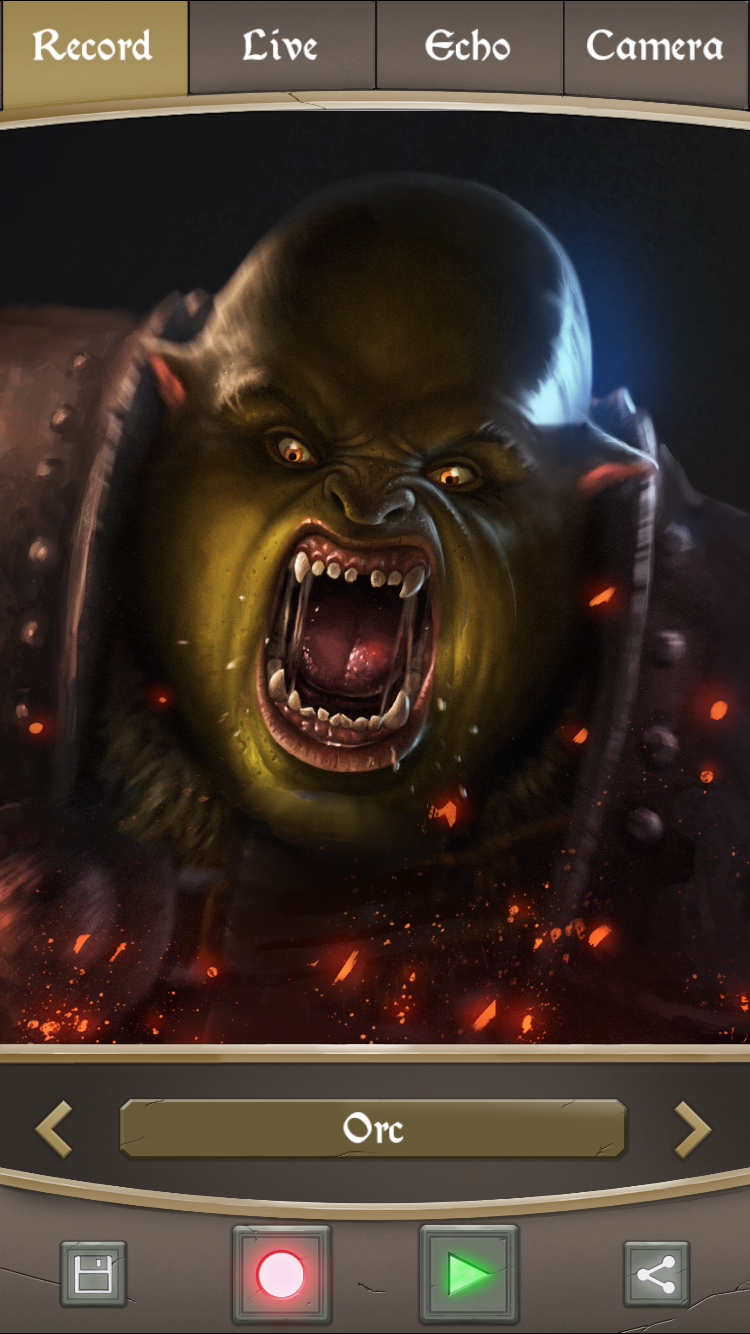 • In ‘Camera’ mode you can record a video with your new monstrous voice and share it with family and friends.