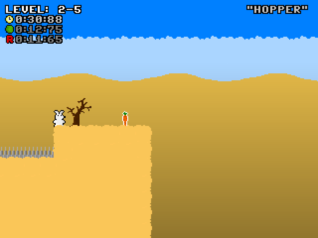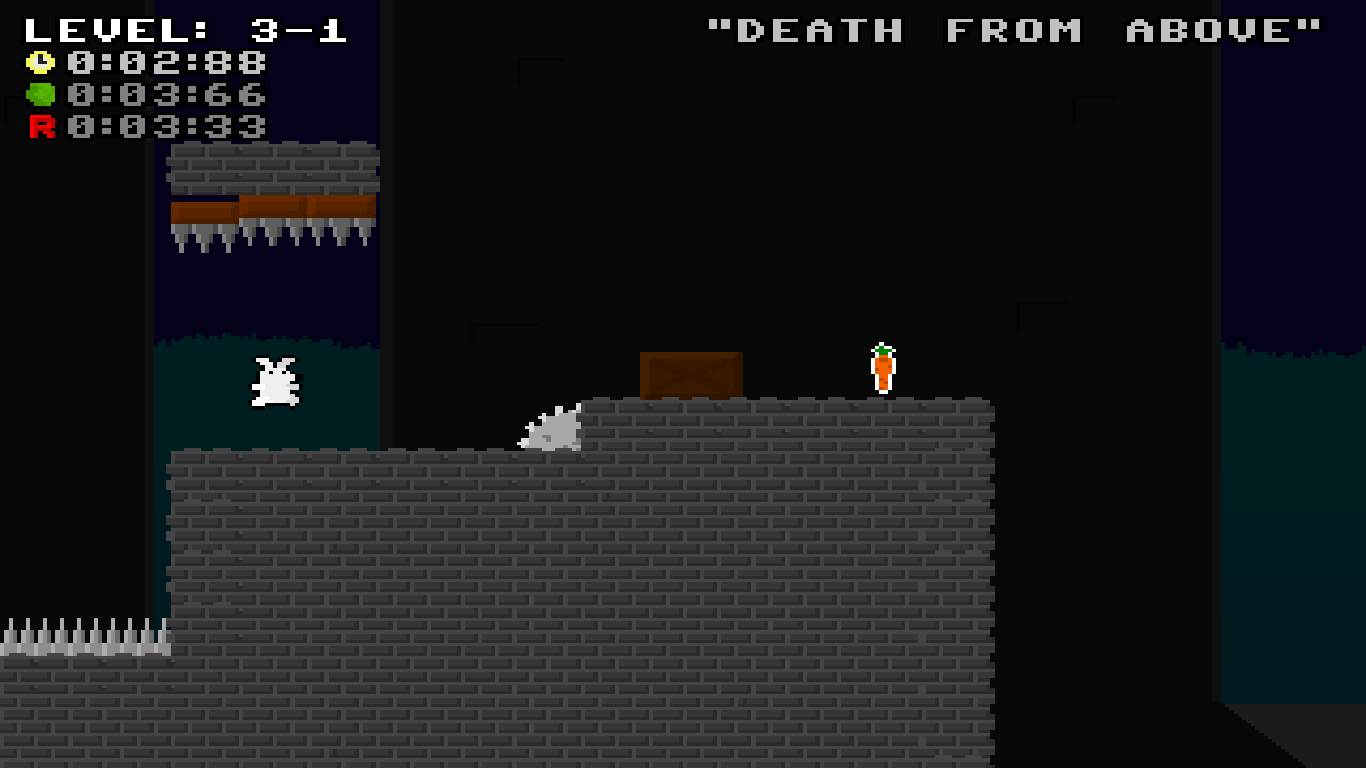 Fluffy the Bunny is hungry for carrots! Too bad someone hid them in plain sight, only a few jumps away! Can you help Fluffy? The levels might be a bit dangerous, but you wouldn't hurt Fluffy, right? Pull those tricky jumps and avoid hazards!