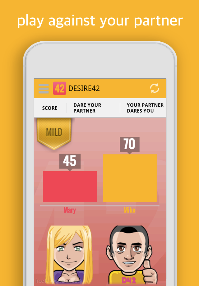 Compete against your partner! Earn points as you complete dares. Who's gonna win? you or your sweetheart? DESIRE 42 is a great app for couples, download for free and let us know if you like it!
