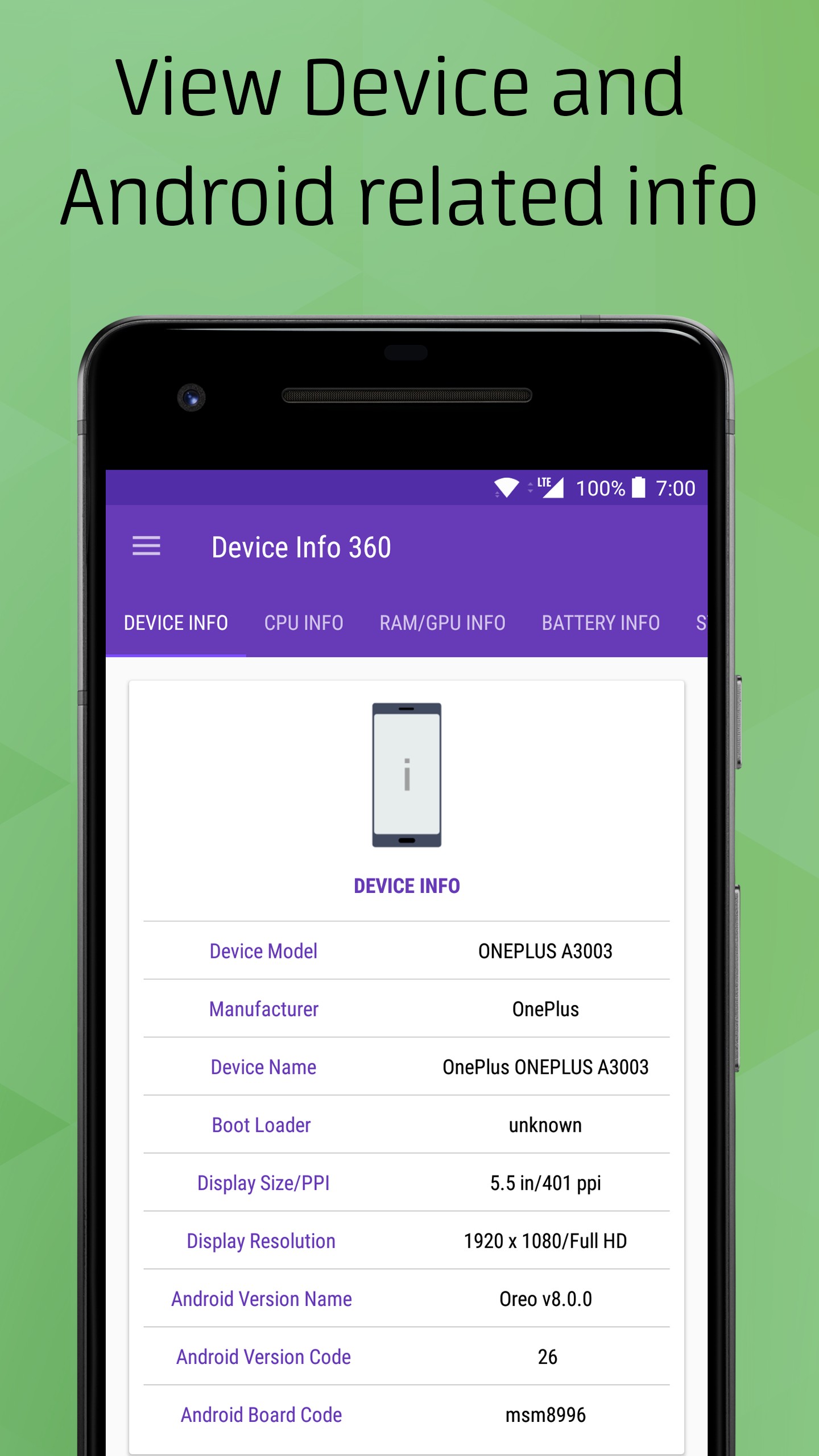 Device Info 360 is crafted with love and passion for Android. Enjoy using Device Info 360. We’d love to hear from you, so leave a review and tell us what we can do to make this the best Android Device Info app.