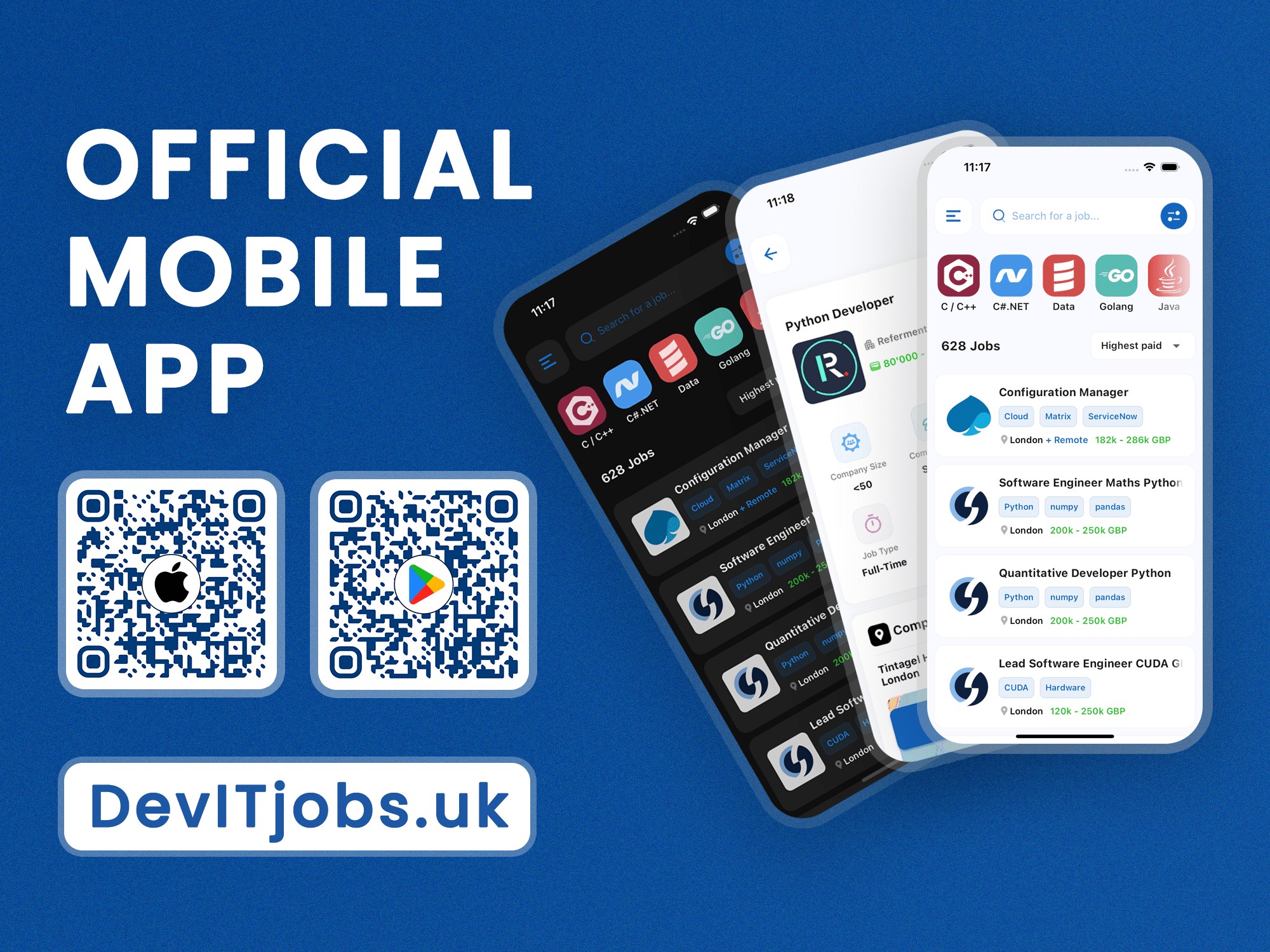 For a fresh job opportunity in the UK, look no further. DevITJobs.uk is your ultimate platform for a seamless and rewarding job search experience. Embrace transparency, diversity, and openness in the British IT market. Download our app now and begin your professional journey!