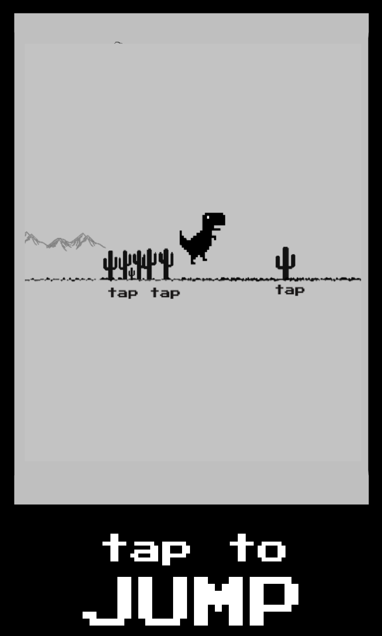 This is a game about a Tyrannosaurus Rex that run and can jump. . Funnily enough, his sole goal in life is to avoid crashing into cacti, which apparently can get him killed or at least stuck until you start over again .