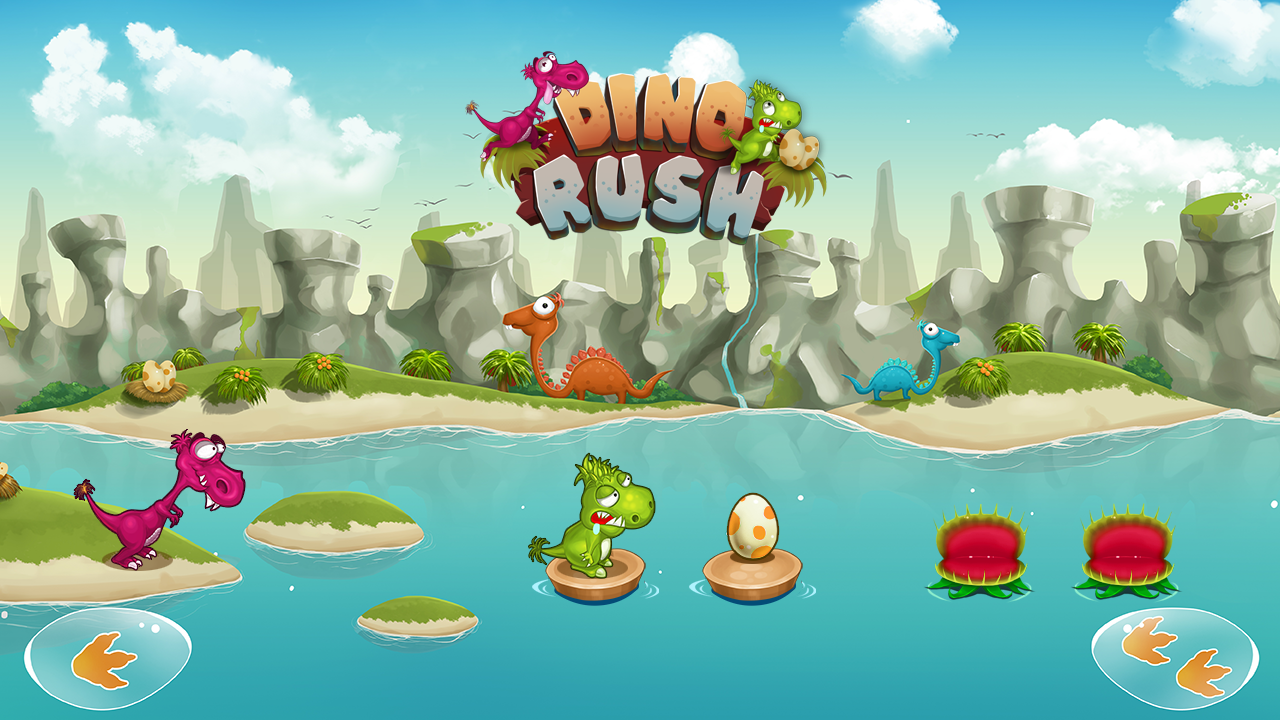 Dino Rush will give you immersive controls the greedy dinosaurs run quickly across the river from the pursuit evasion of name ferocious Tyrannosaurus rex seeks to catch attention. Let's run quickly and never stand still for too long because the river always has many pitfalls always waiting to swallow you. On the way to eat as many eggs as possible to score many points.
