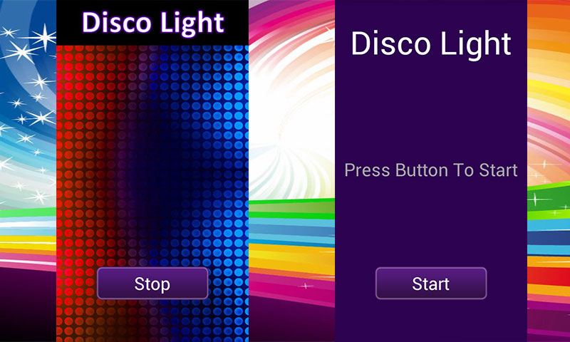 Now Enjoy your own Disco with Colorful Light, Party, Friends gathering with your own Dj / Music through this Application. Get going at any party, anywhere, anytime. Disco ball light is the ultimate party machine. Multiple Spark Color will change the screen of your Android/ Smart-phone into a Disco twinkle Color , that would be a Multiple blinking Glow Colors. → The light and colors in this Application is just for fun and entertainment, you don't have to go out for a party, like you make your own Disco party at home through this Disco light application, just you have to arrange your Music for your self. Instruction & Features: You have to click on start button, different colors will automatically change and your Flash LED Light will start blinking and colors will look like a Disco light. ★ Multiple Colors Light ★ Disco Light ★ Party music Light ★ Blinking Color Light ★ Its just for Fun and entertainment ★ Time for Disco Party , Switch off the lights play the music and use this app for fun ★ Free App ★ Small Size ---------------------------------------- Important Message Make sure your Android/ Smartphones working Accurate. Might be possible, this application doesn't support Low quality Android/ Smart-phones. ----------------------------------------- Feel free to send us your comments. Your feedback is important to us.
