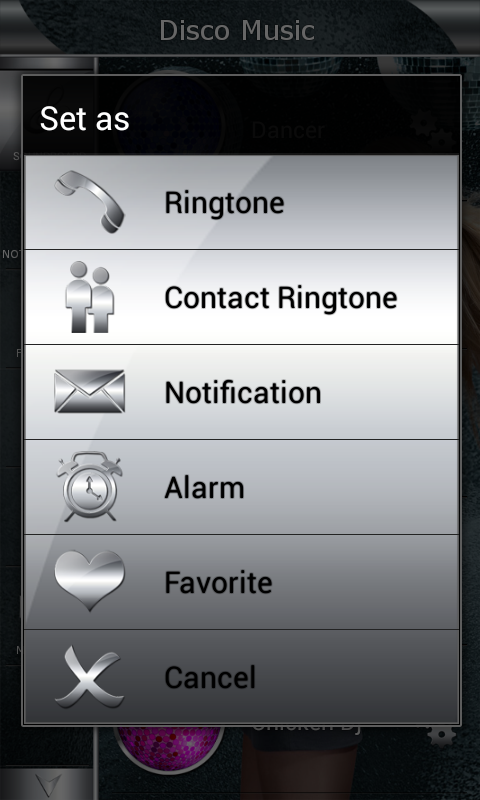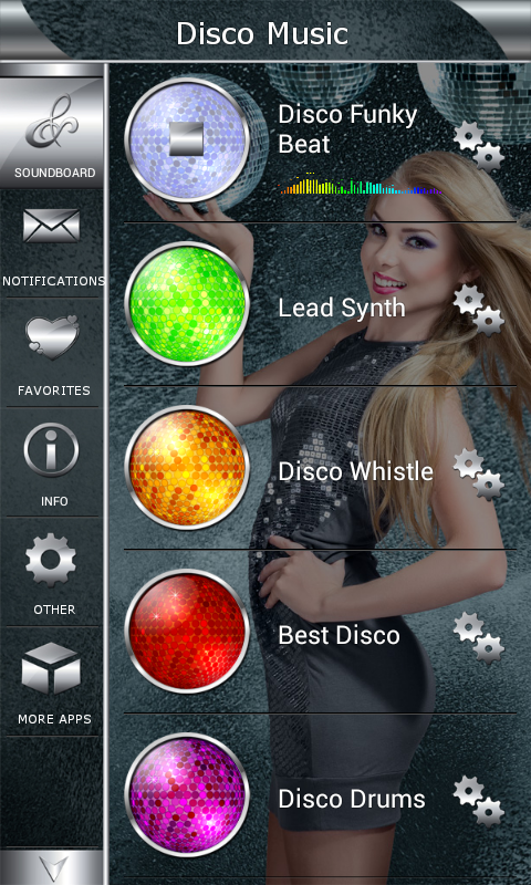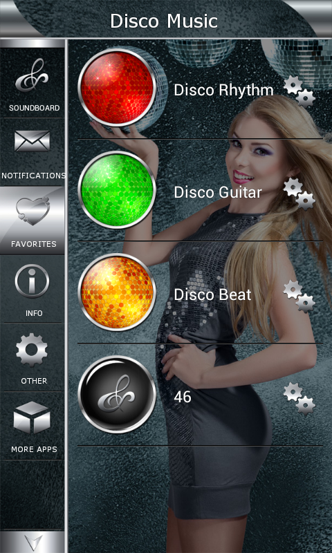 Come on everybody, it’s disco party time. The best and most popular Disco Music Ringtones app for Android™ is ready to be installed on your phone and tablet. Best of all these disco beats are completely free! Disco soundboard includes top high quality disco ringtones with different music genres like: dj musicringtones, techno music sounds, house music tones, as well as rave and dubstep music beats that will force you to play as you are on the dancing floor. This popular disco remix app also includes some funny disco animal sounds such as: disco chicken, disco sheep, disco bird or even disco snake ringtone. You don’t need to be in the discotheque, to listen disco hits while disco lights create dancing atmosphere, now you can listen best disco tones wherever and whenever you like thanks to your android phone and this cool disco app. Let the loud beats and top disco sounds create disco club mood. We are sure amazing dj effects included into an app will provide you fantastic music experience. Feel free to download Disco Music Ringtones, it’s completely free for everyone.