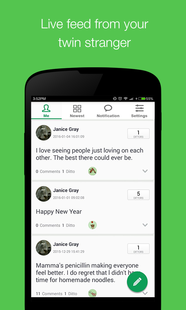 Find a twin stranger who is doing the same thing with you? Join Dittor.