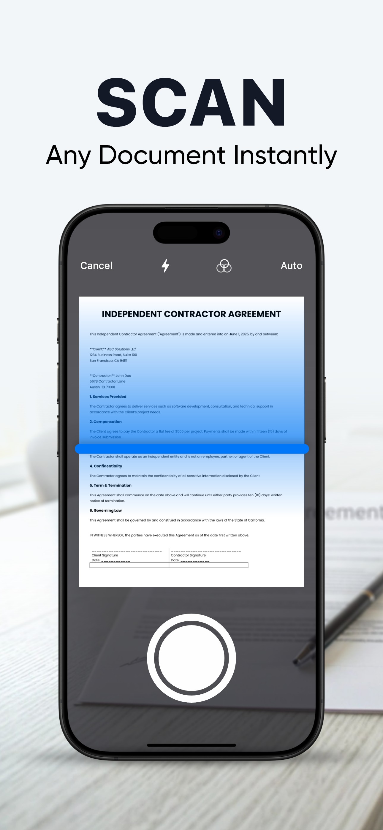 DocBound makes scanning documents on iPhone faster and sharper than ever. With smart automatic edge detection, it instantly crops and aligns your scans, removing background clutter and shadows for a clean, professional look. It is the best app for scanning documents when you need speed, accuracy, and effortless quality — all in one seamless experience.