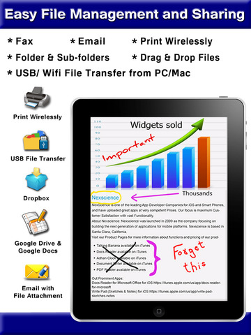 It allows you to mark up documents with highlights and handwriting, insert text, stamps, pictures or signature and share your documents with others through email or fax.