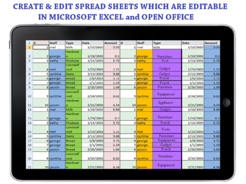 • Create & Edit Spreadsheets that can be opened or edited in Microsoft Excel