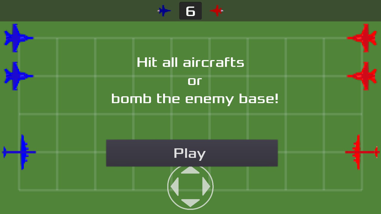 This is a turn based game for two. You win if you destroy all enemy aircraft or your bomber reaches the enemy base. A random number of steps for each move is limited from 1 to 6. Tap on a plane to select it and use any available number of steps.