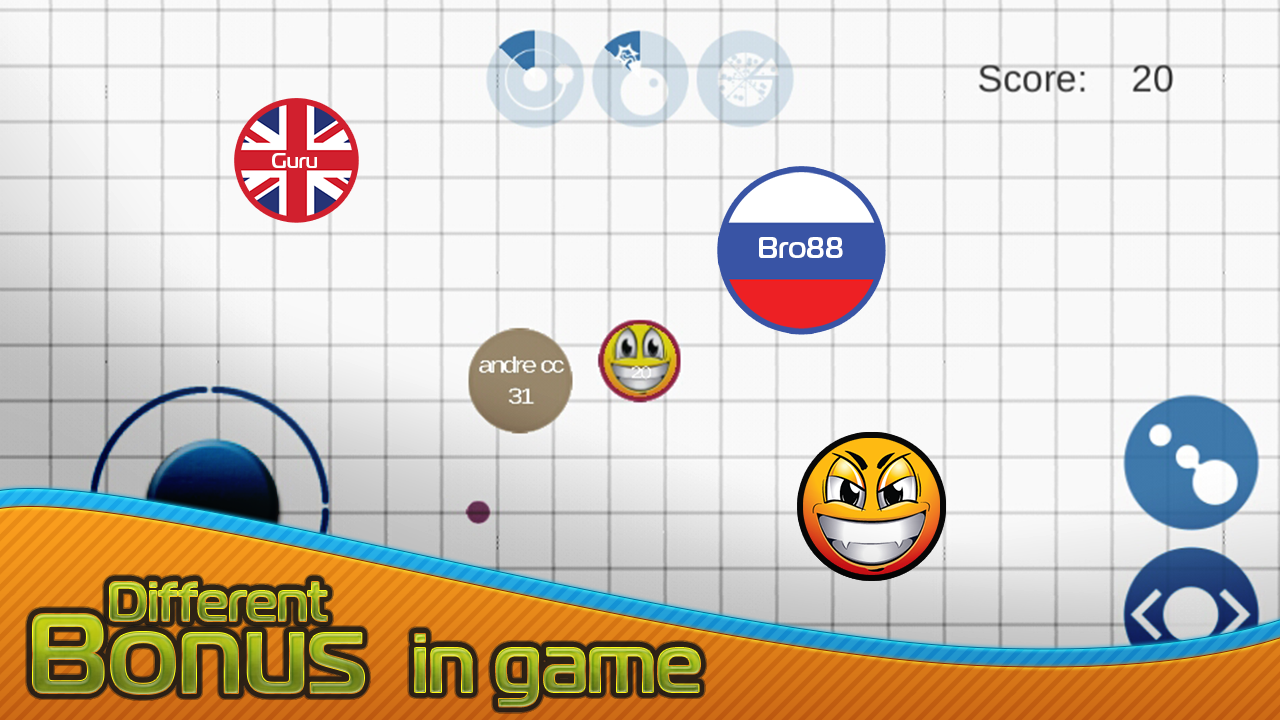 Develop gathering little dots and eating other players. Your goal is to become the biggest player in the field. Fear the obstacles, big saws. There are a lot of different bonuses performed in this game: