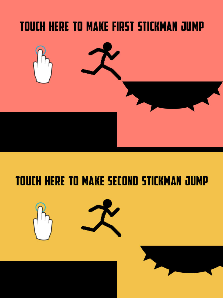 Remember to Make both stickman jump on platforms and not to fall to make high score.