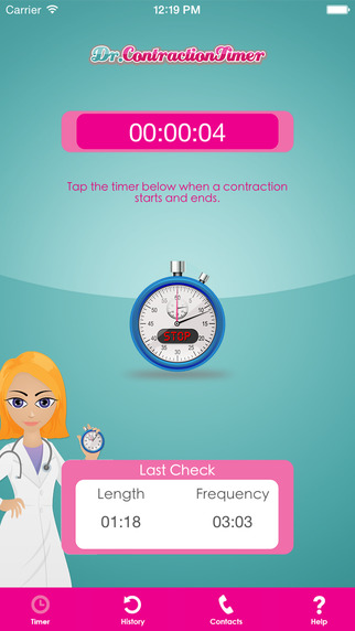 Dr. Contraction Timer is a must have tool that helps you time your contractions when you start to have frequent contractions and going into labor. It’s a simple app to use, all you have to do is tap start and stop on the timer each time a contraction starts and ends. Dr. Contraction Timer will make it easier for you since you don’t have to concentrate to write down contraction lengths and doing calculations during the labor, the app is doing it for you.