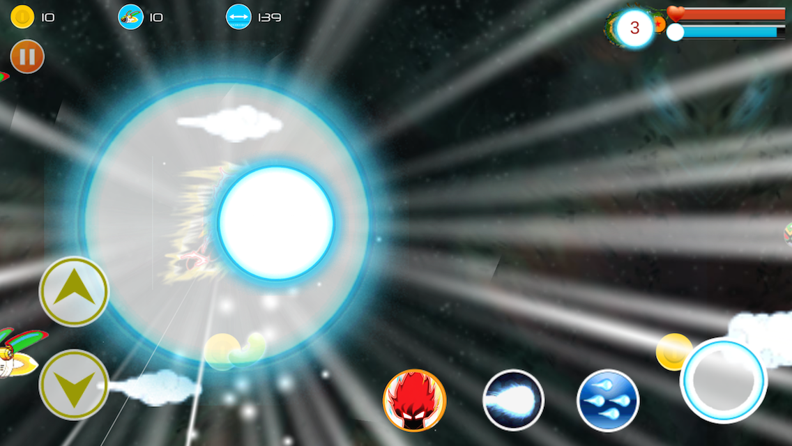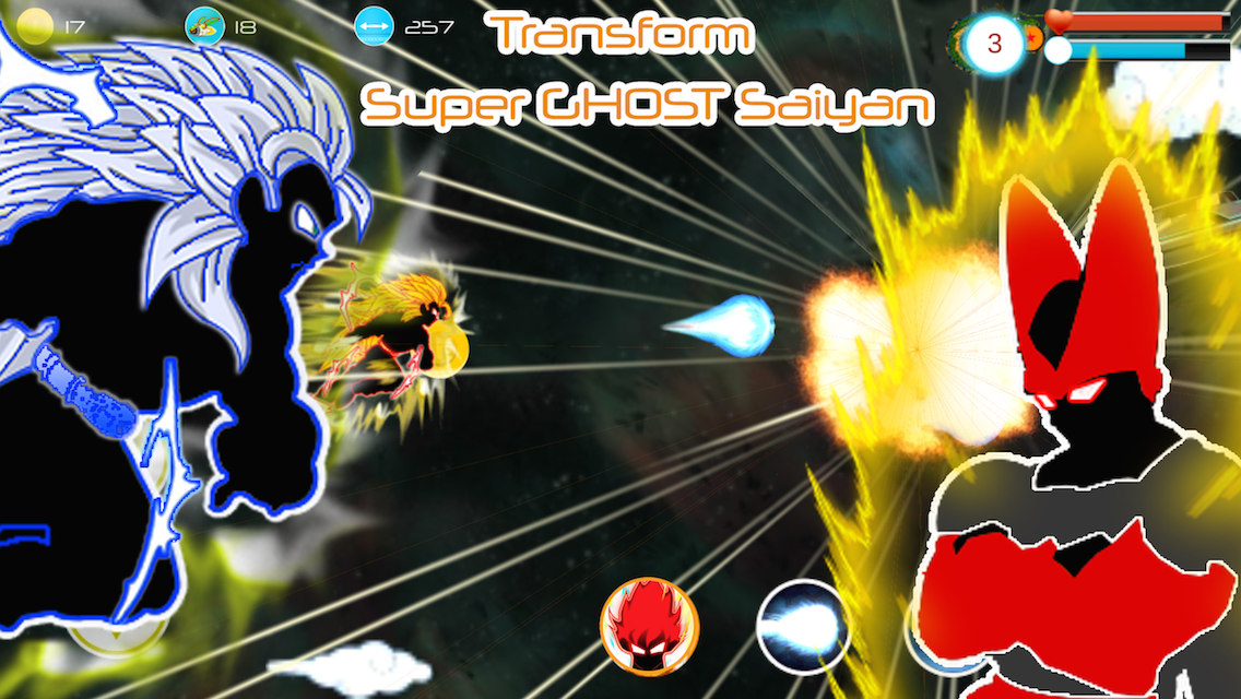 In this game we will give you a chance to TRANSFORM and control the Super Ghost Saiyan Warrior with the strongest power. You will have chance to use the cool skills effect like Blast, Kamehameha, Continuous Kamehameha and Spirit Bomb coming soon!