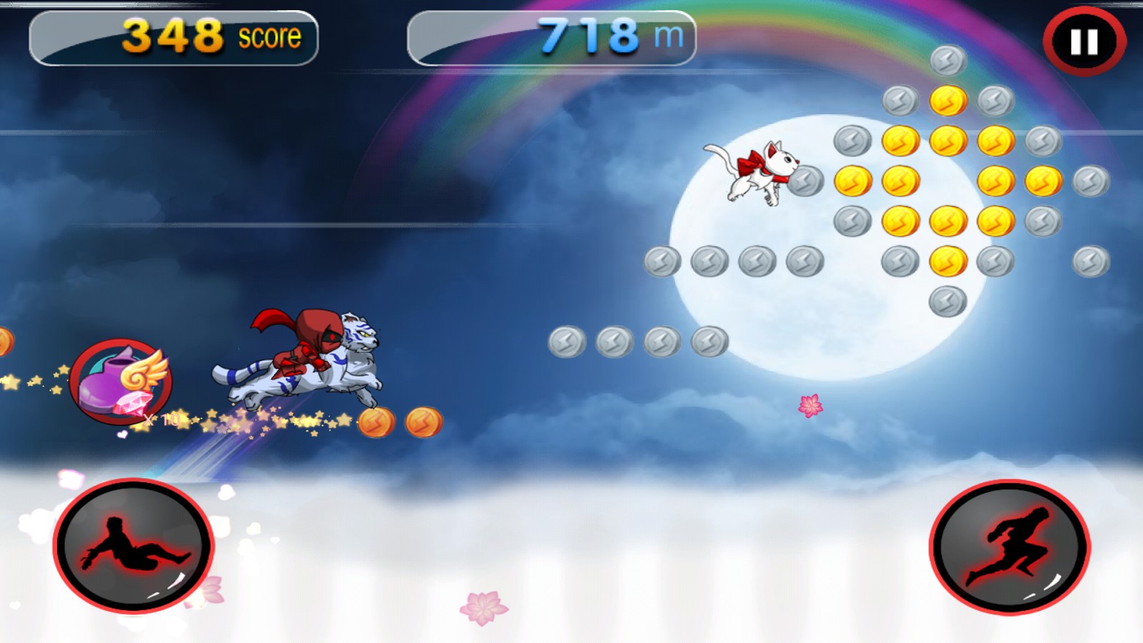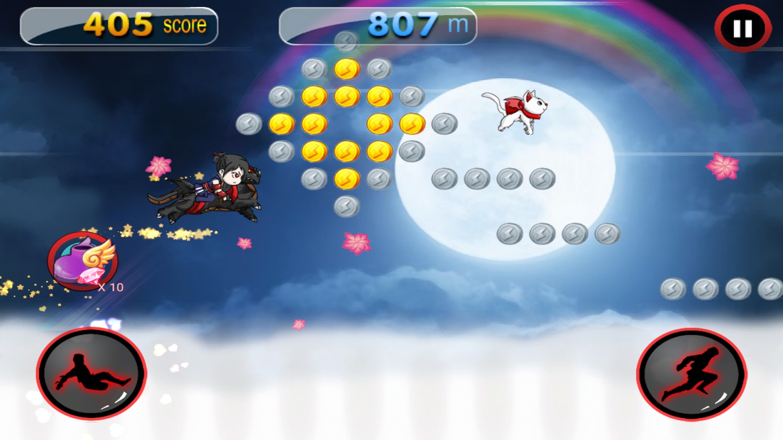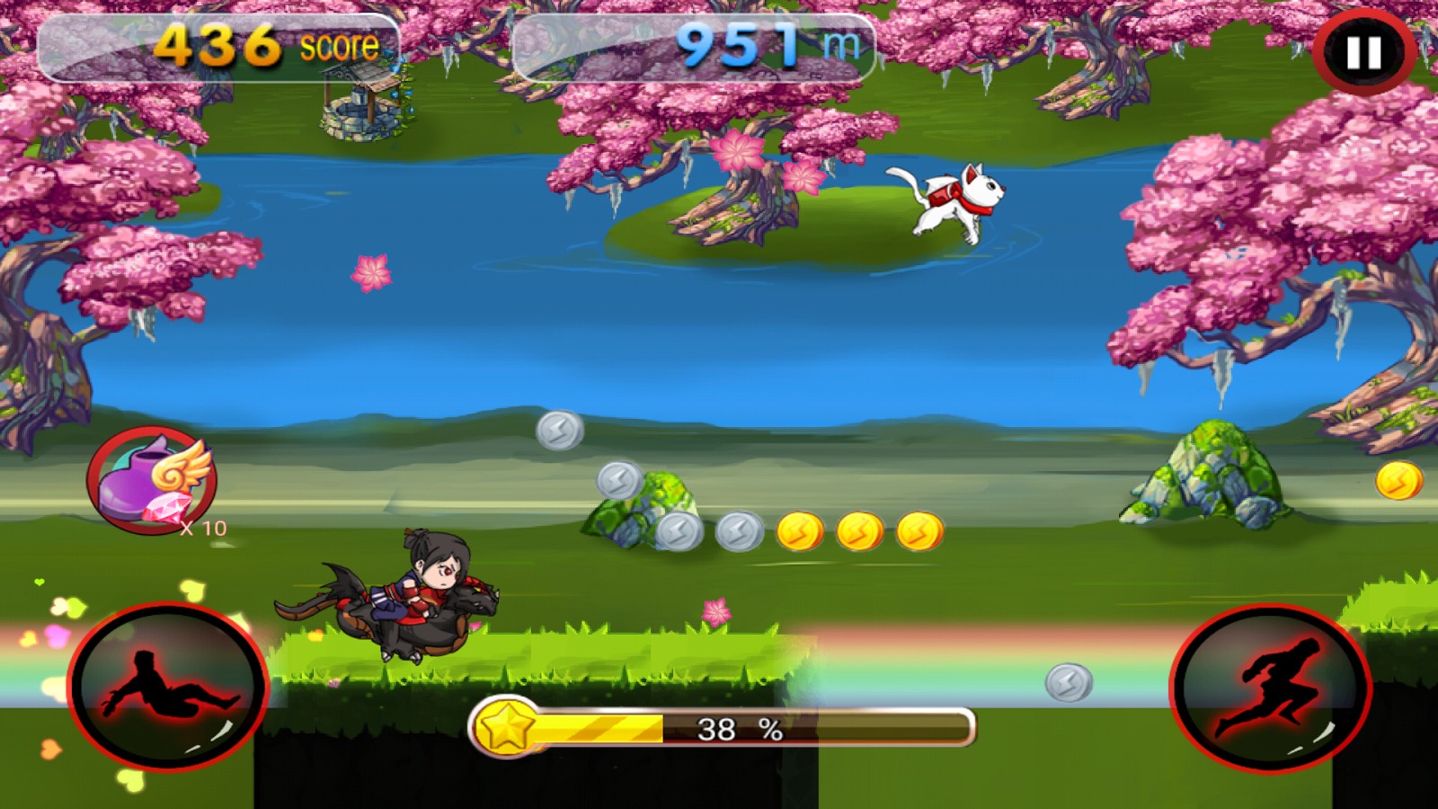 - Run through stunning beautiful locations such as Sakura Flowers Garden, Green Bamboo Garden, Night Shining Moon Clouds, and Seaside Night;
