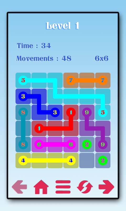 There are over 100 levels of varying difficulty, you need to connect a line of identical digits, but that line would not in any case do not intersect.