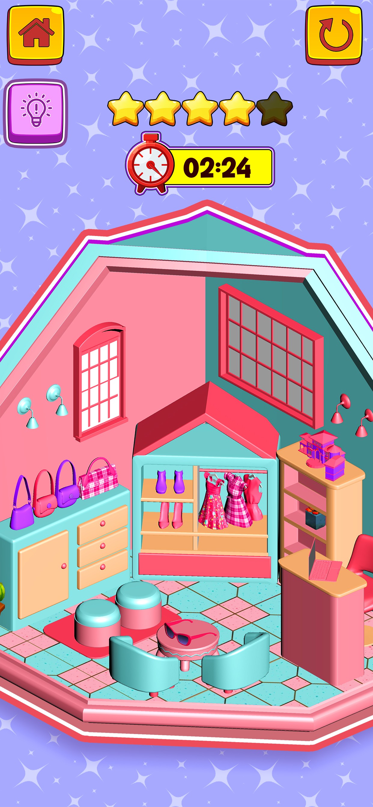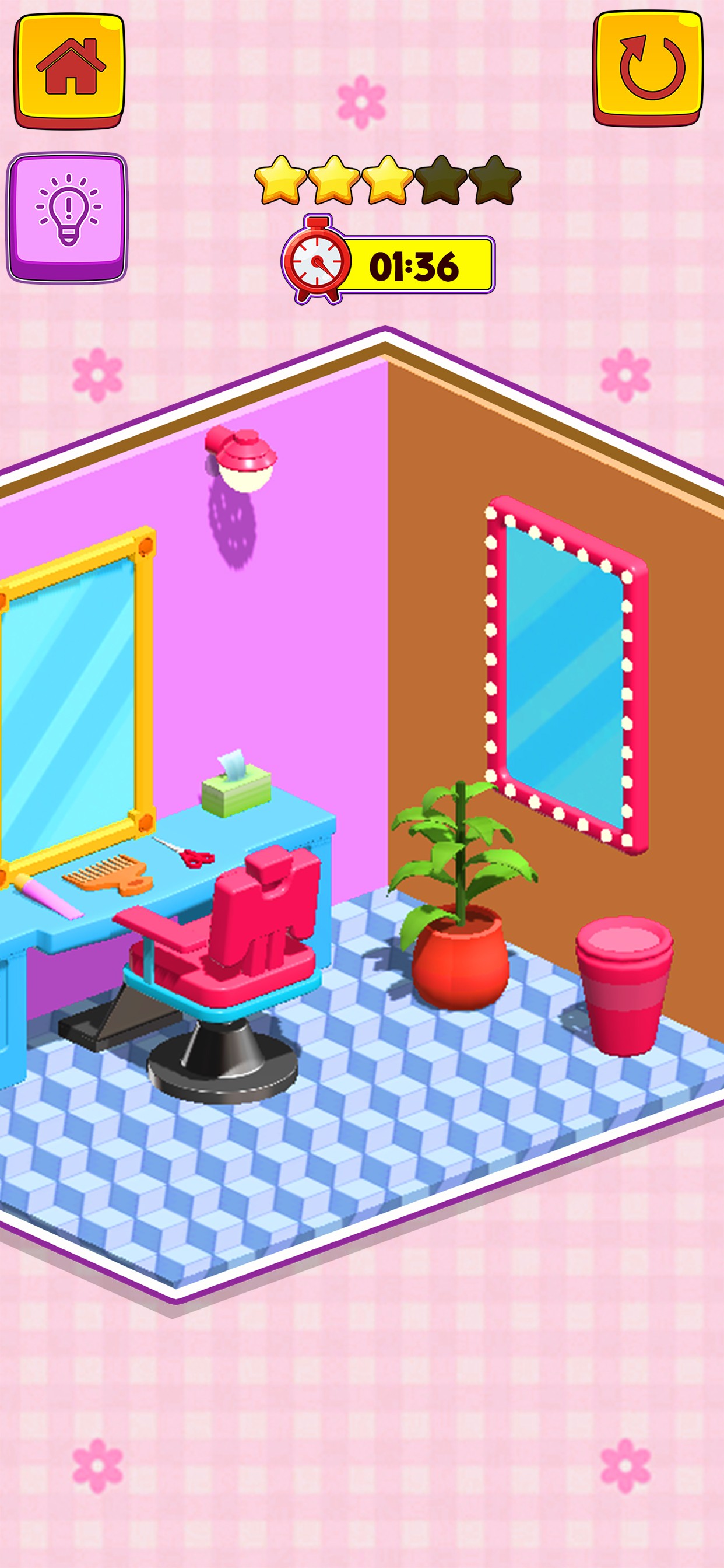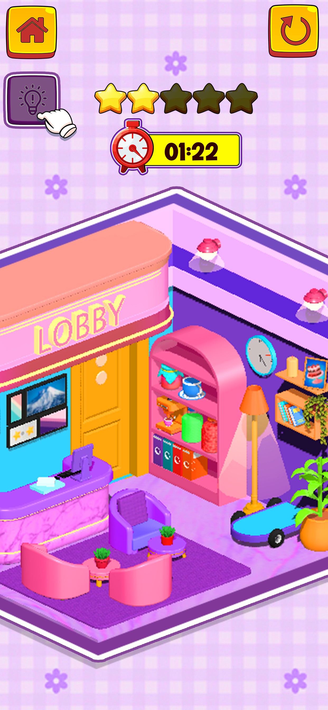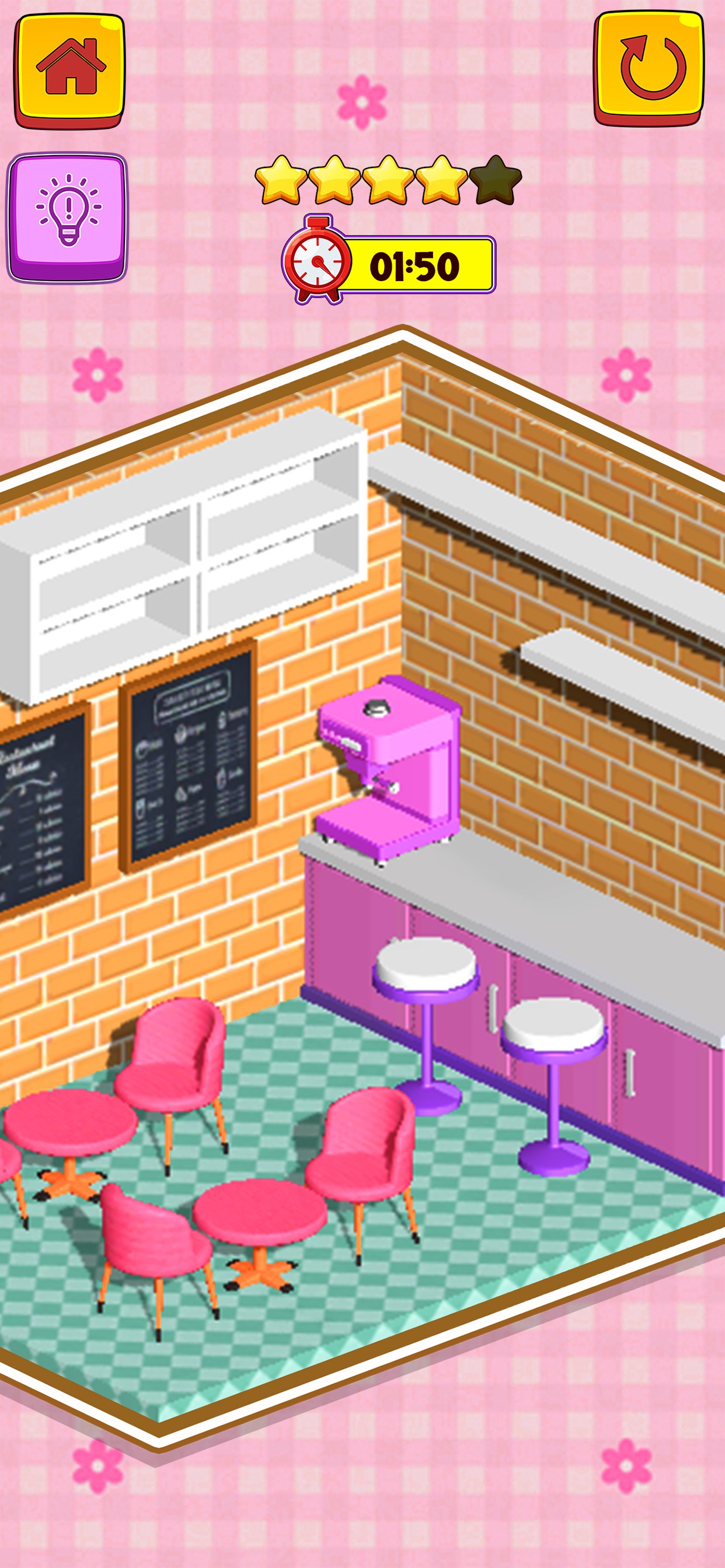 In this game you have multiple location which you have to change into the best places. You have messy candy shop which you have to transform in to the amazing candy shop. You have ruined garage which you have change by using your skills. You have to clean the room , pack the old furniture and place new furniture and make the new look.
