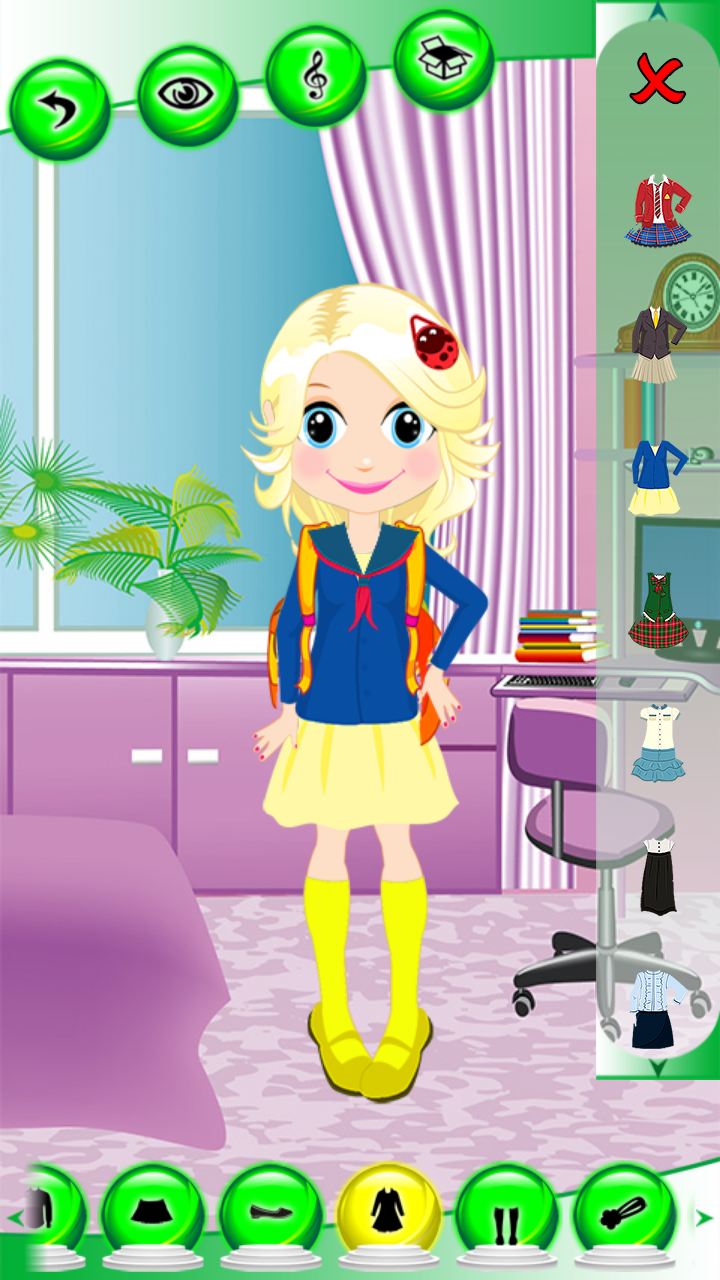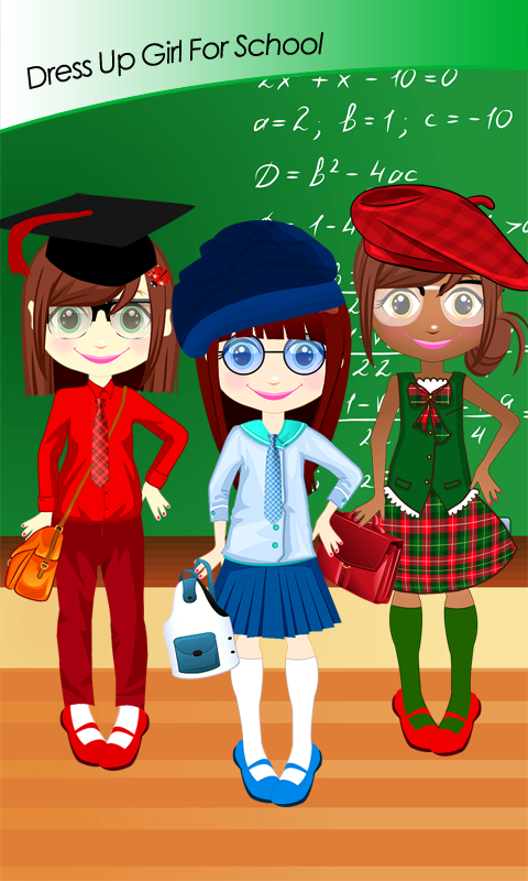 Run game and select model you like the most. We put models school girls, each with own sets of clothes and other necessary elements. Use your imagination and enter your virtual fashion salon with set of beautiful dresses, skirts, t-shirts, then trousers, socks, shoes and bags. Select school uniform you like the most, and make your school girl a queen at high school. Make a pretty school girl look, and select a nice top haircut. Now you are a famous fashion designer, so take good care of your star princess and make her look pretty. Take a look to fashion closet and get some beauty clothes, boots, etc. Also choose top hairstyle for girl, put her sunglasses, flowers in the hair, etc. She needs and some jewellery, like necklace, bracelet, earrings. Dress up your school girl as a princess of prom night. Let her become a celebrity and fashion icon. Play the best dress up games for free and have lot of fun. When you finish with makeover, you can select some cool backgrounds and make a picture of your girl, set as wallpaper and share it with friends. Dress up and other two girls. This is coolest dress up and makeover game for girls, teens or boys because they can learn about fashion design, what is trendy now, new stylish clothes, spring or summer fashion trends, etc. Follow latest fashion trends and create your own fashion clothes. Use this fun game as inspiration to design real clothes and for yourself. This is an very educational dress up game, because girls can see what is trendy at the moment, or how to design outfit, how to make a different newest combinations with footwear, bags etc.