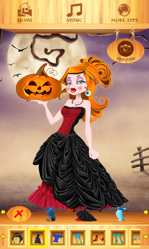 Is the Halloween your favourite holiday? Do you like trying different costumes, colorful masks , crazy hats? Then take a part in the best halloween dress up and makeover game for girls of all ages. Download for free Dress Up Halloween Girl and accept this great fashion challenge. Jump into Halloween fashion world, meet your witch girl and help her to get ready for the craziest parties during this cool holiday celebration.
