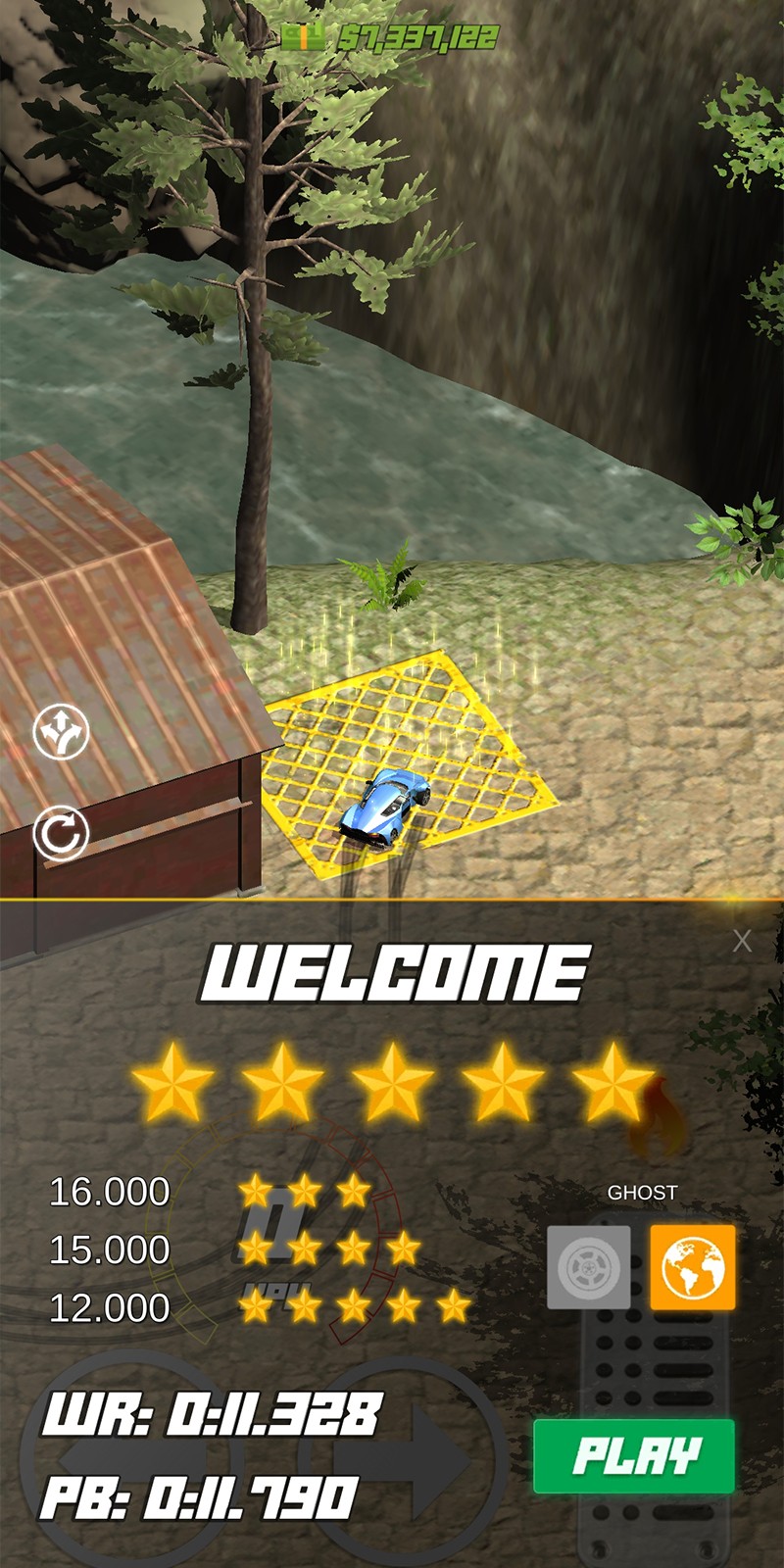 The Idea is simple. Enter a level and race against yourself or against the current record holder. You will work towards getting 5 stars for the level to unlock more and to earn more money. It also has real crash physics that will dint and damage your car the more you crash and fall.