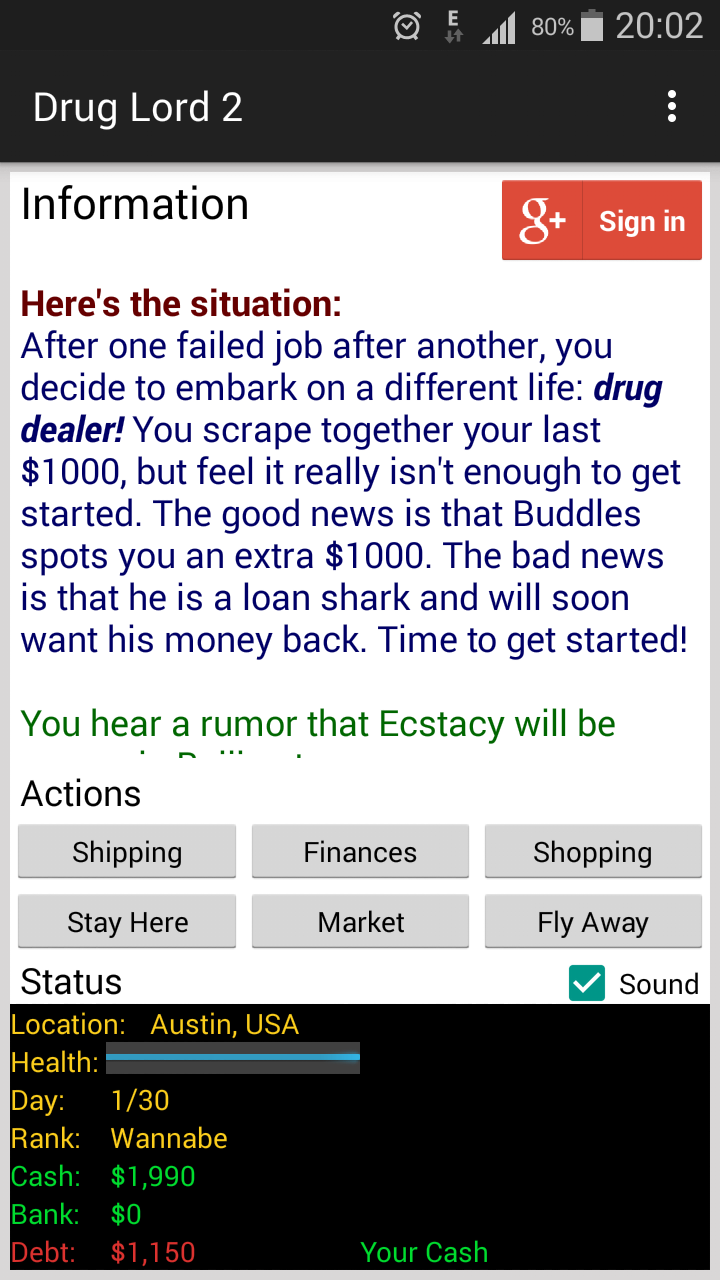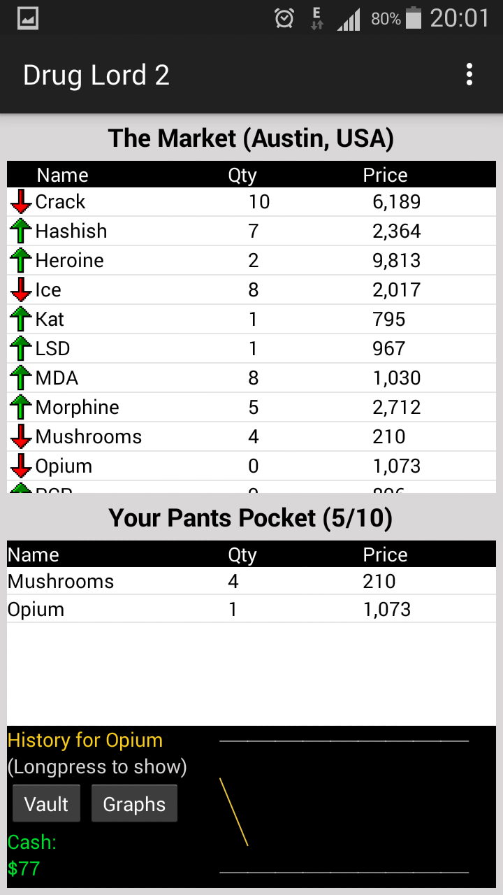 Drug Lord 2 is a classic game of trying to make it big by buying and selling drugs...YAY!