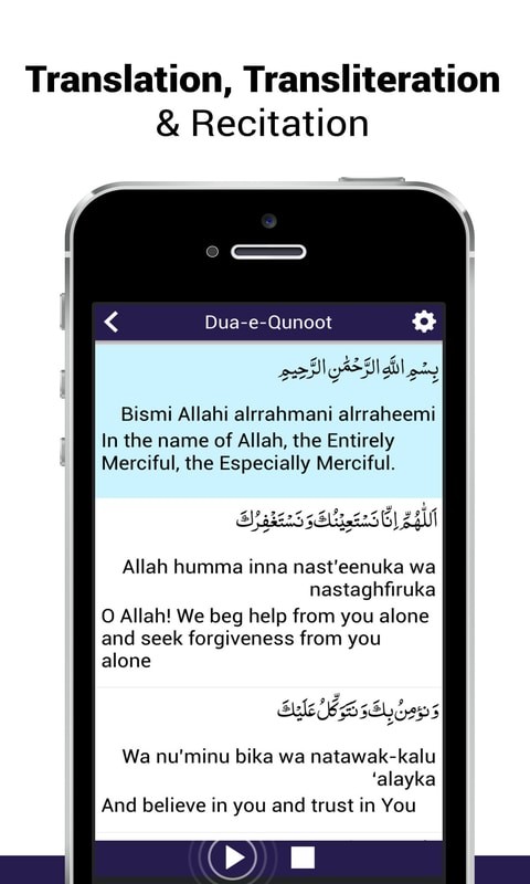 • Full audio recitation of the Dua-e-Qunoot with pause and stop options
