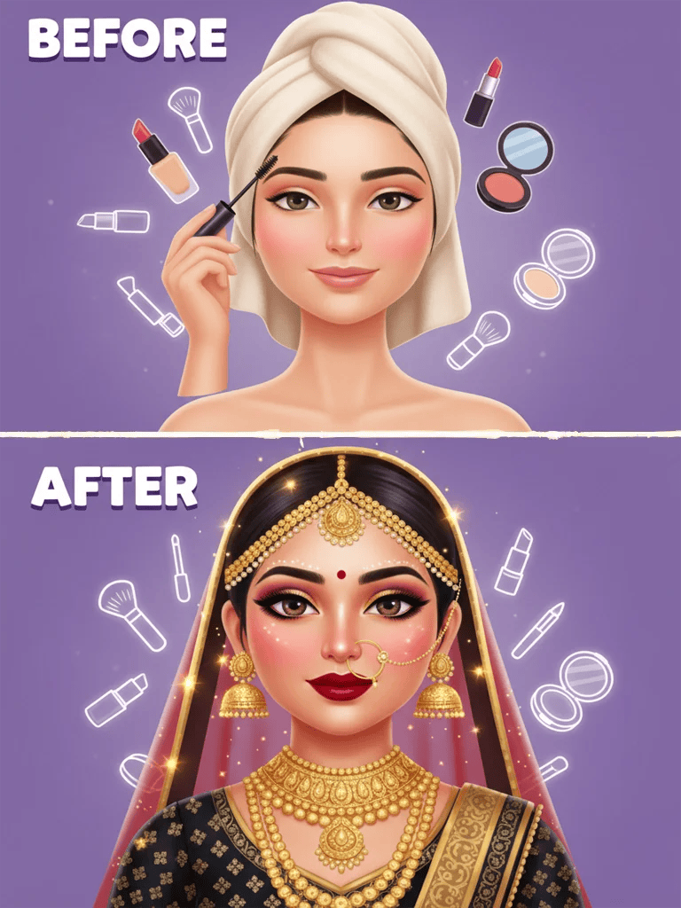 Perfect for aspiring fashion stylists, makeup artists, and anyone who loves Indian wedding traditions! Whether you dream of becoming a bridal stylist or simply enjoy creative dress up games, this makeup salon game offers hours of entertainment.