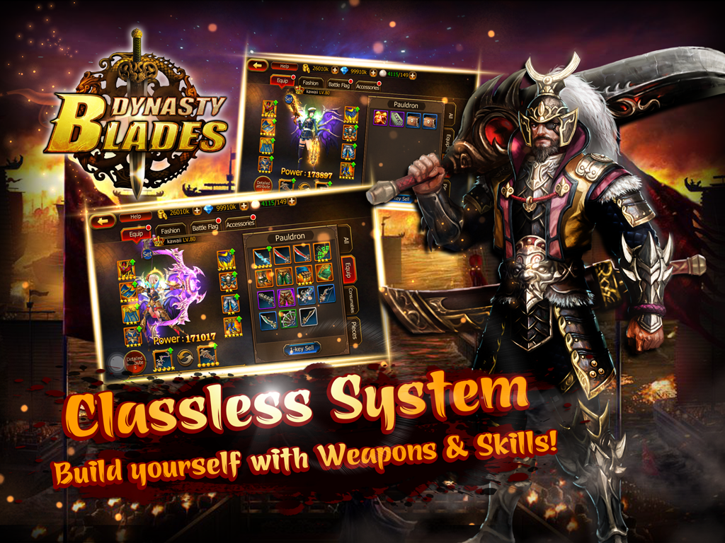 Crush enemies and establish your dynasty in Dynasty Blades, the first Three Kingdoms Theme's 3D ARPG with Classless System!