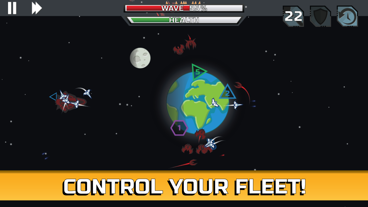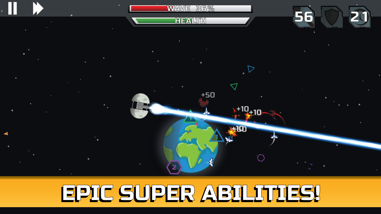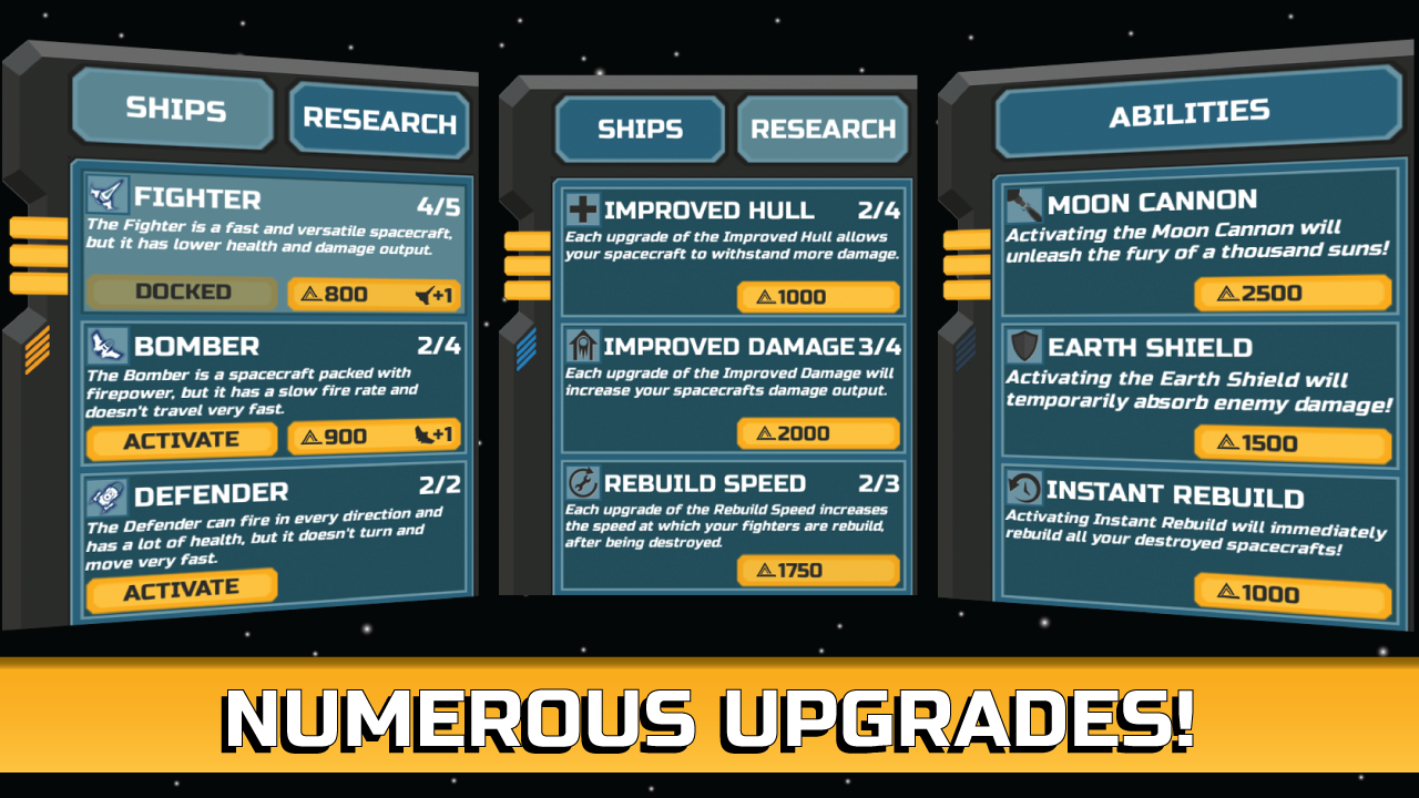 Unlock different kinds of upgrades to make your spacecrafts even better or unlock earths mighty power by building a shield that covers the whole planet or build a laser cannon on the moon!