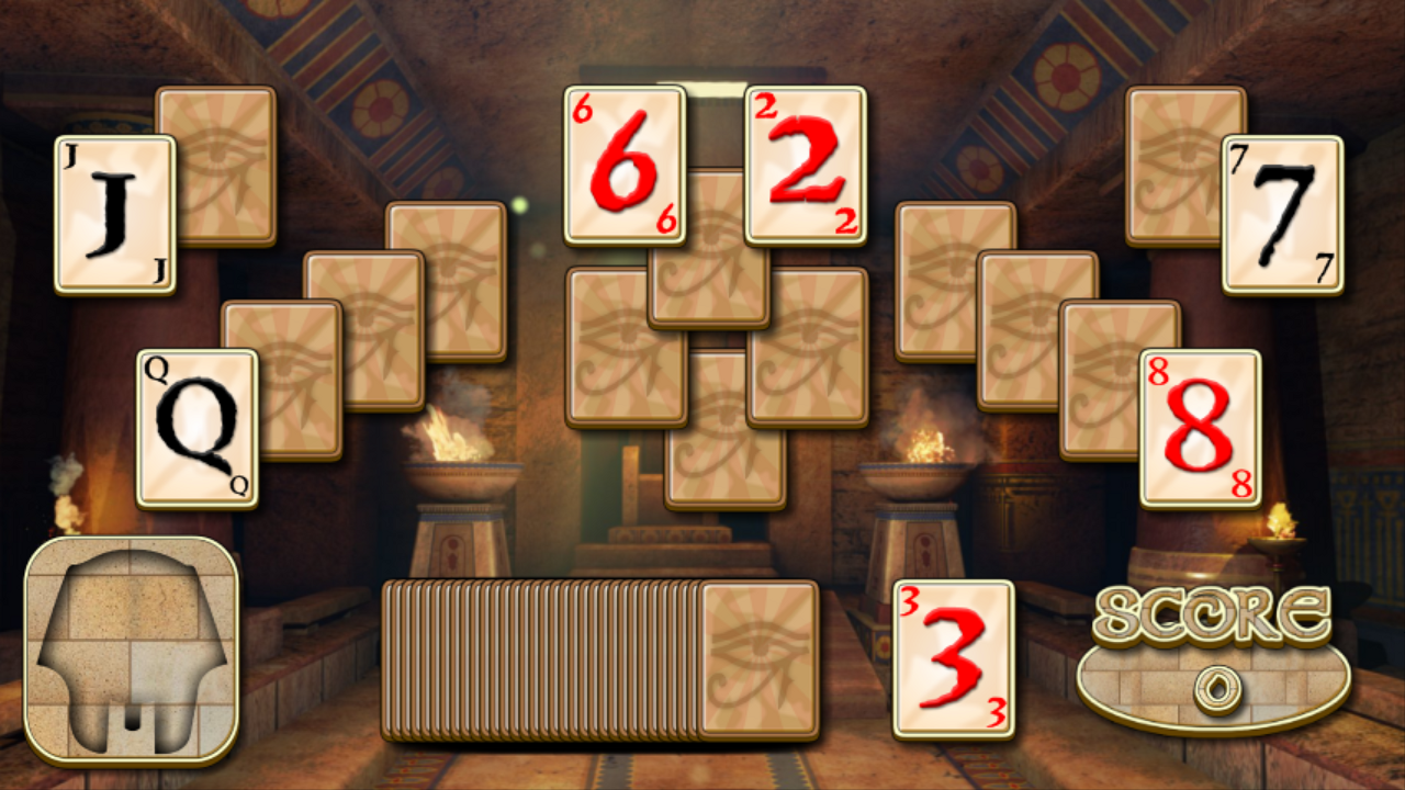 The goal of this egyptian solitaire is to get rid of all the cards on the screen. To remove a card, it should be one value higher or lower than the open card. A follows after K. There is no time limit, thus you can play serenely. The score is calculated by how many cards you were able to remove. If you choose the wrong card, points will be deducted. There are six different solitaires to choose, some easier and others more difficult. We believe that if you like solitaire games, you'll love it.