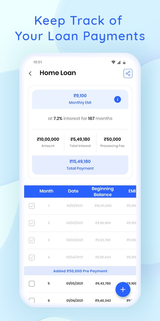 ~ Manage all different types of loans in one place in a comparative tabular format with the help of this mobile EMI app.