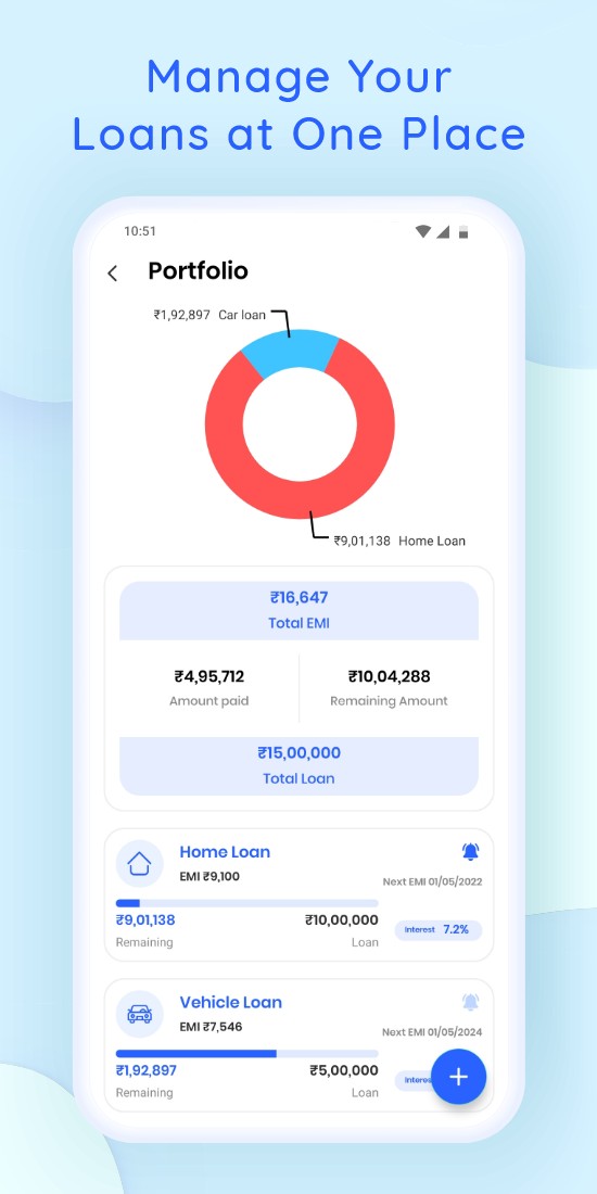 ~ Create loan profile for your home loan, vehicle loan, property loan, personal loan, agriculture loan, educational loan, business loan, student loan & more for managing all loans