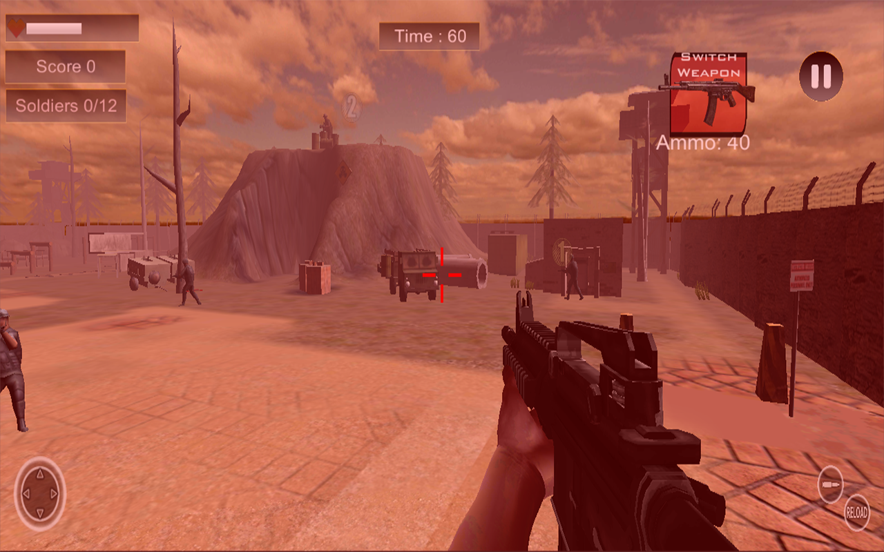 The enemy isn't aware of your presence so take your first shot carefully, to begin the onslaught, because the moment you fire, your gunshot will be heard and the enemy will be upon you before you know it. There’s no turning back, so let the onslaught begin. Make sure you keep yourself well focused and determined before firing your first shot. Hold your breath & Pull the trigger in this real-life 3D graphics and sounds environment, the game gives an exhilarating experience to complete this mission. Use your limited ammo wisely and kill the insane enemies at a distance before they get a chance to aim at you. Aim for head-shot to preserve your ammo.