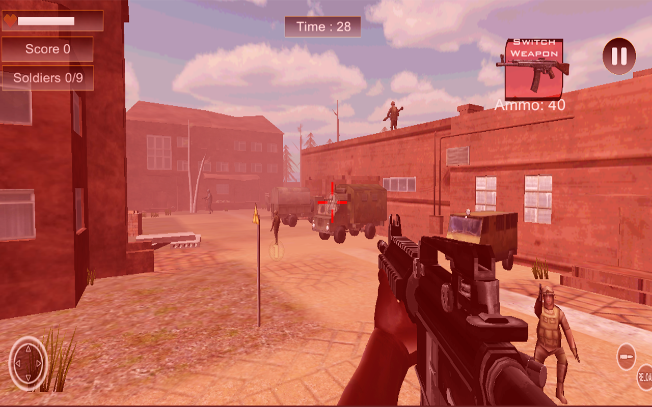Enemy shooting revenge 3D is aiming to offer you an enjoyable time while playing it and it simulates a real battle against terrorists. Terrorist team must eliminate the thread by shooting all the enemies, which is the terrorist team. You need to move fast and don't give your enemies time to shoot you because your life will drop and you will lose the battle when you die. Shooting more enemies means more chances to survive into the army mission. It is not just a regular shooting game, you will now learn how to use different guns and shoot fast, before you even start thinking. Yes, that is the task: to be able to shoot before thinking about shooting them. If you aim and use you’re shooting skills well, you will be able to give head shots and you will kill the Enemies directly. Advance in game in order to unlock new weapons for better battles. If you play well, grenades are available as well. Have fun and protect the country!