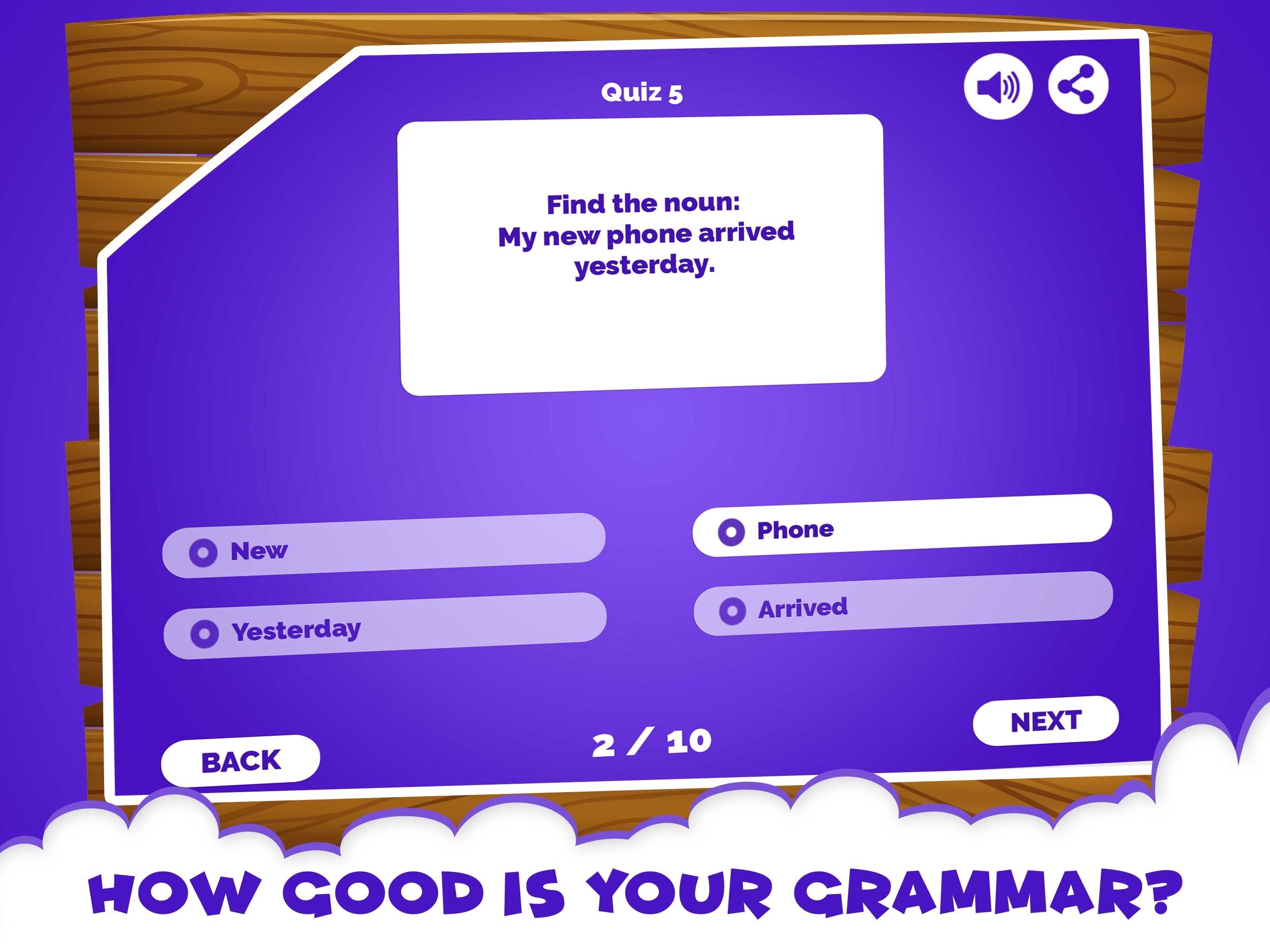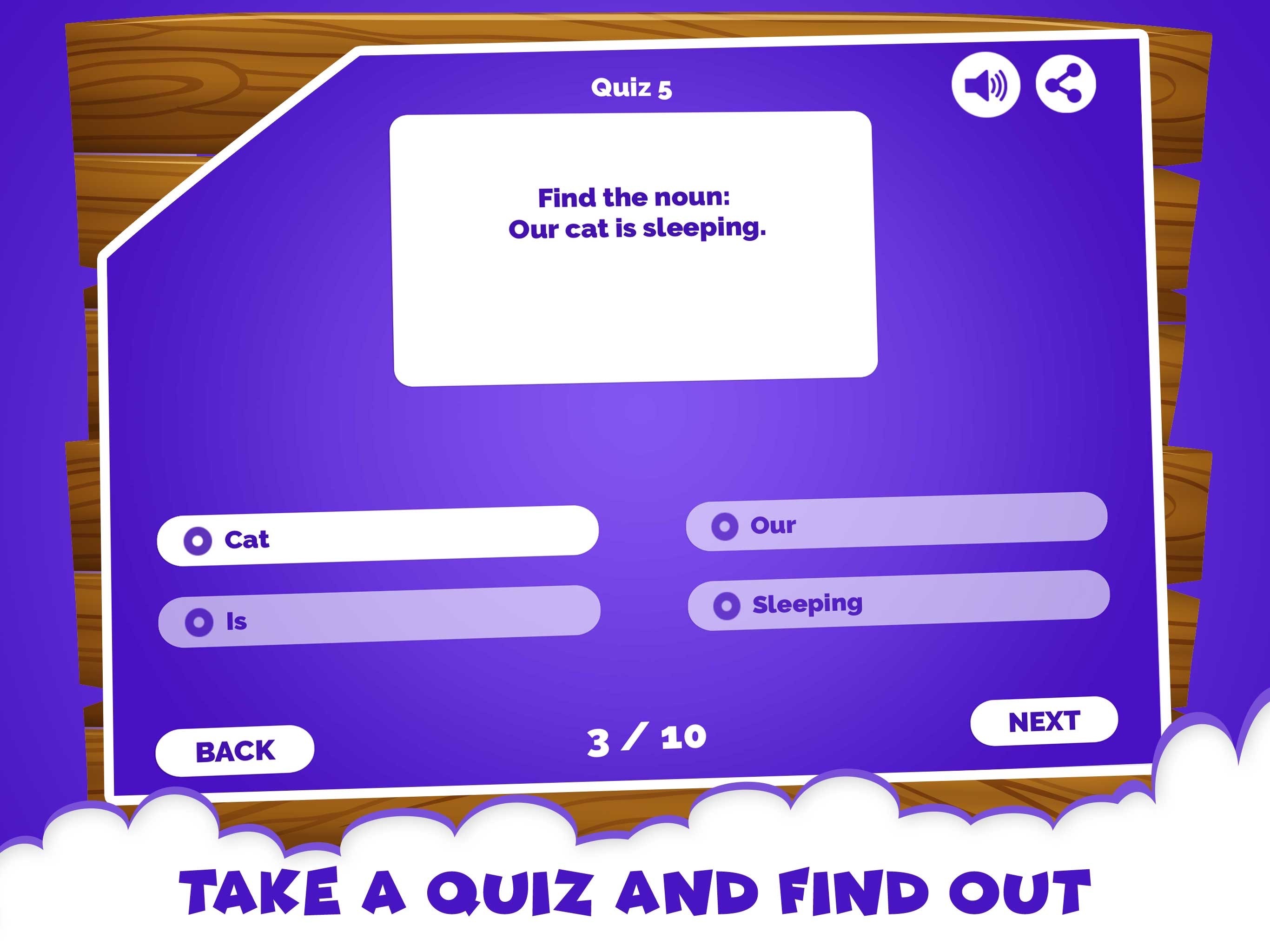 A perfect app for kids to practice the 8 parts of speech: Noun. The activities and quizzes are ideal for all young students who wish to become masters in parts of speech. With variety of sentences and unlimited questions, a child will be a master of English grammar Noun if he/she is a regular user. English grammar Noun app is necessary when you want to improve with this specific part of speech. Grammar apps are of great use for parents and teachers who are seeking for fun ways to establish English grammar learning habits in kids. We should know how vital it is to initiate such skills in young children from an early age and what’s better than fun activities to do so. A perfect way to uplift your child’s noun learning, this app will help build his confidence and improve.