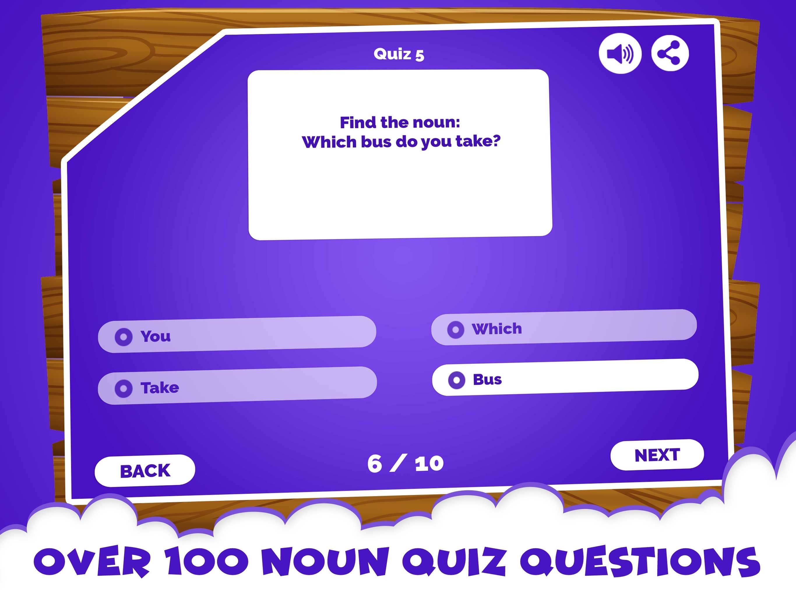 Help your child practice learning Noun to help him improve his communication skills in writing through teaching noun via noun games. Teaching Nouns is important because it’s an integral part of sentence construction. English grammar Noun quiz game is a Noun for kid’s app which can be downloaded in your mobile devices to improve teaching and learning through various sentence exercises. It provides an easy and fun way to learn on the go. It is not necessary for children to carry along notes and books with them everywhere. Children can now practice learning nouns with this noun for kids game app.