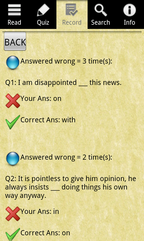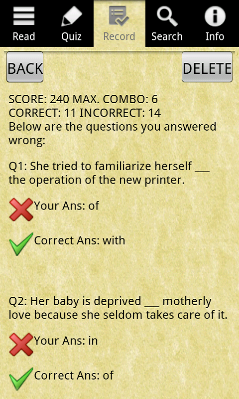 ★ DETAILED test result: It shows which questions you answered incorrectly, score, max. combo (Max. number of questions answered correctly consecutively), date and time of the test. Better still, it shows your frequent mistake questions too! It is useful for your revision and interesting to challenge with your friends!