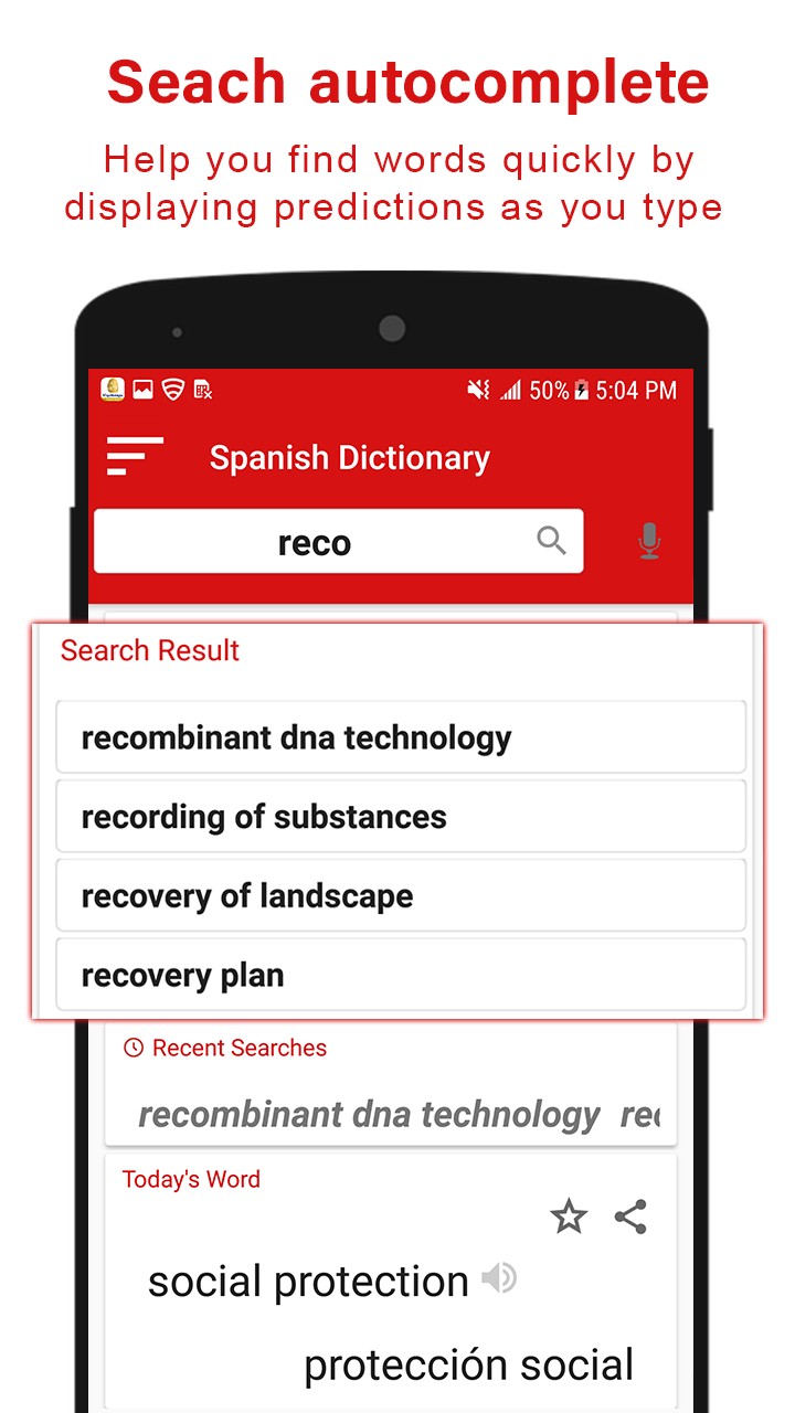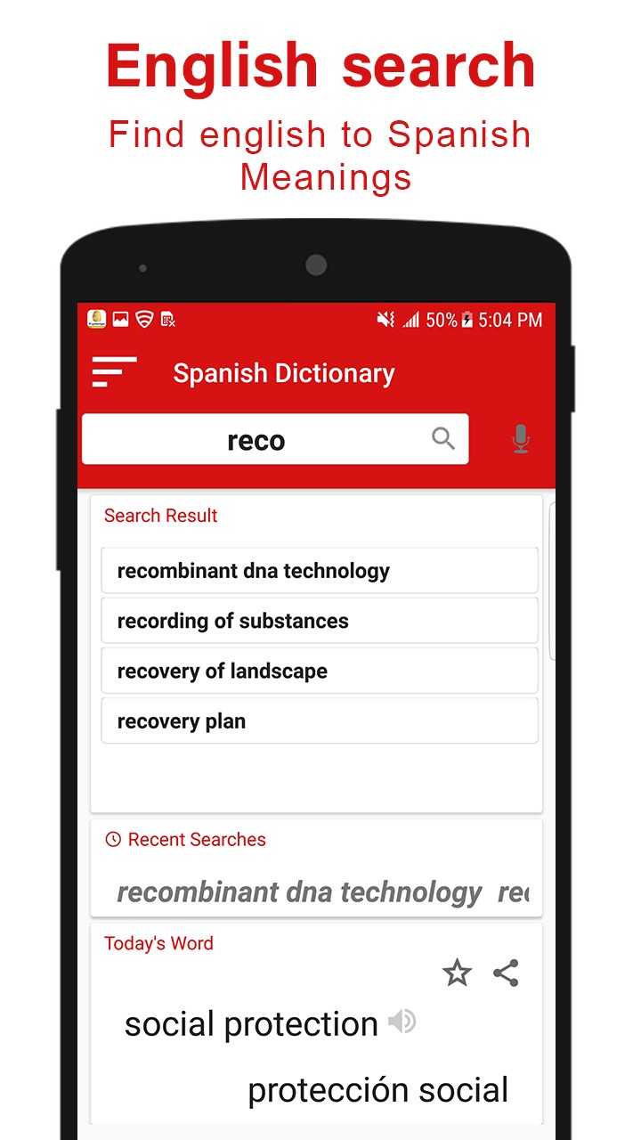 This English to Spanish dictionary app offline free provides following Online Dictionary & Offline Dictionary: