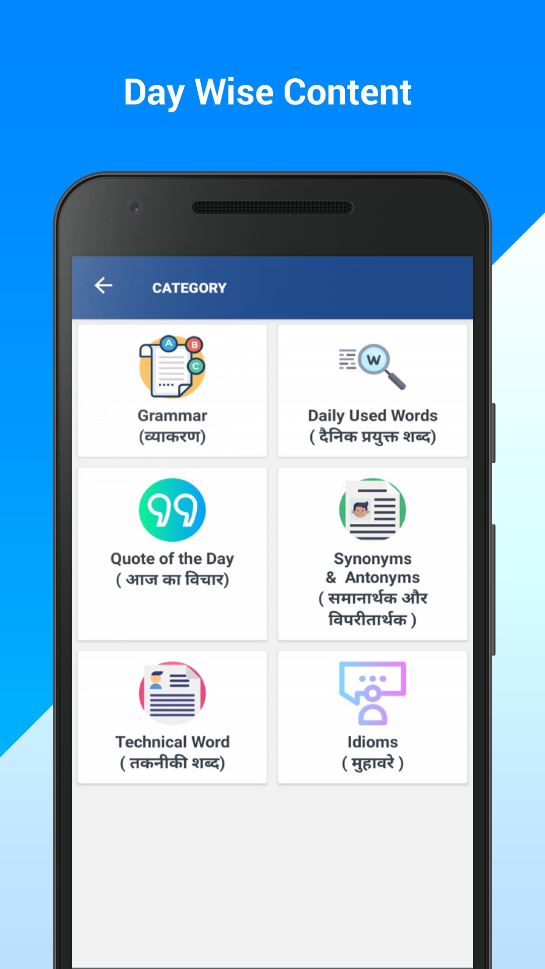 The app has been divided into four convenient units of Grammar, Pronunciation, Conversation and Vocabulary. Each chapter covers one main area of learning English - explained thoroughly with examples and special attention being given to the basic skills.English spiking course 30 days- It’s easy, fun and takes just a few minutes a day!English Speaking Course is very new and innovative application to learn English Speaking Fluently.This app Method provides everything English for Hindi Speakers need to learn English as a second language.
